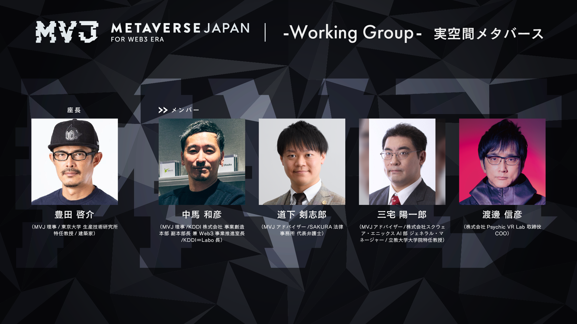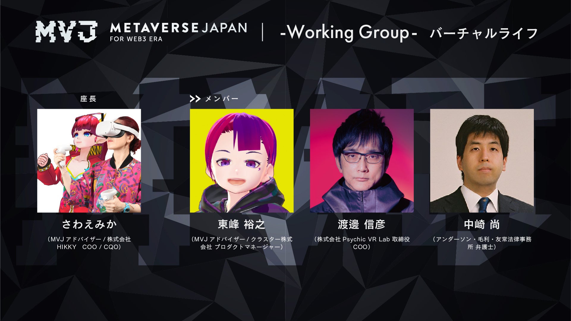 バーチャル空間で完結するメタバースでの生活に関するワーキンググループです。