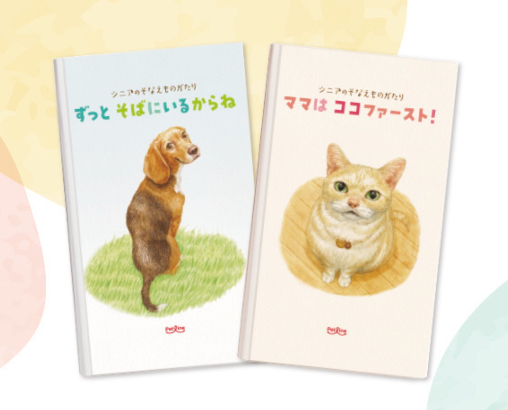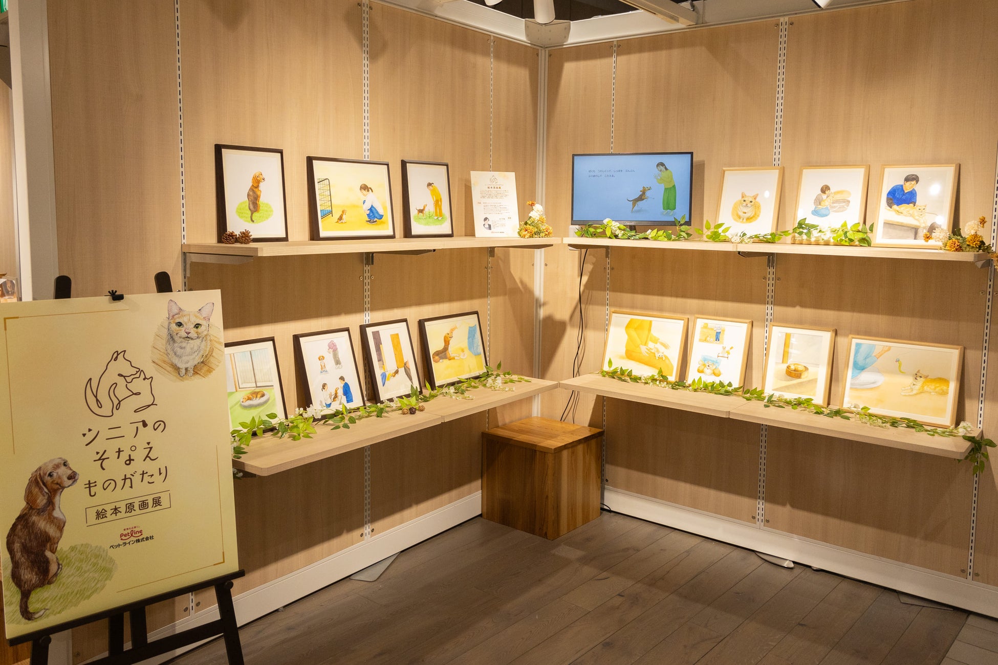 会場では「『シニアのそなえものがたり』絵本原画展」も開催しており、絵本の世界やモデルとなった犬・猫と飼い主さんの関係性、愛犬・愛猫がシニア期に入って気をつけていることなどをリアルに描いた絵本の原画をご覧いただけます。