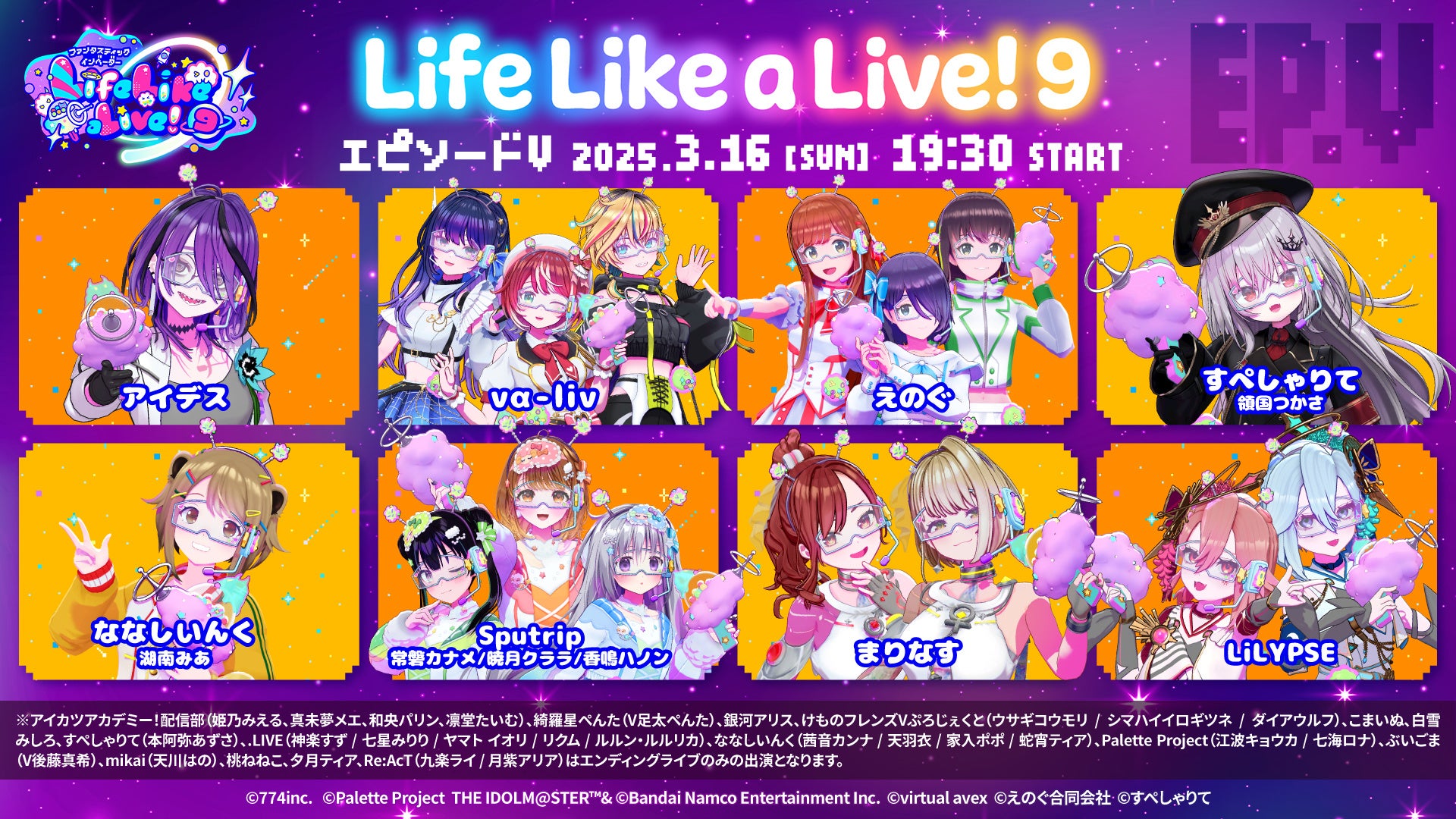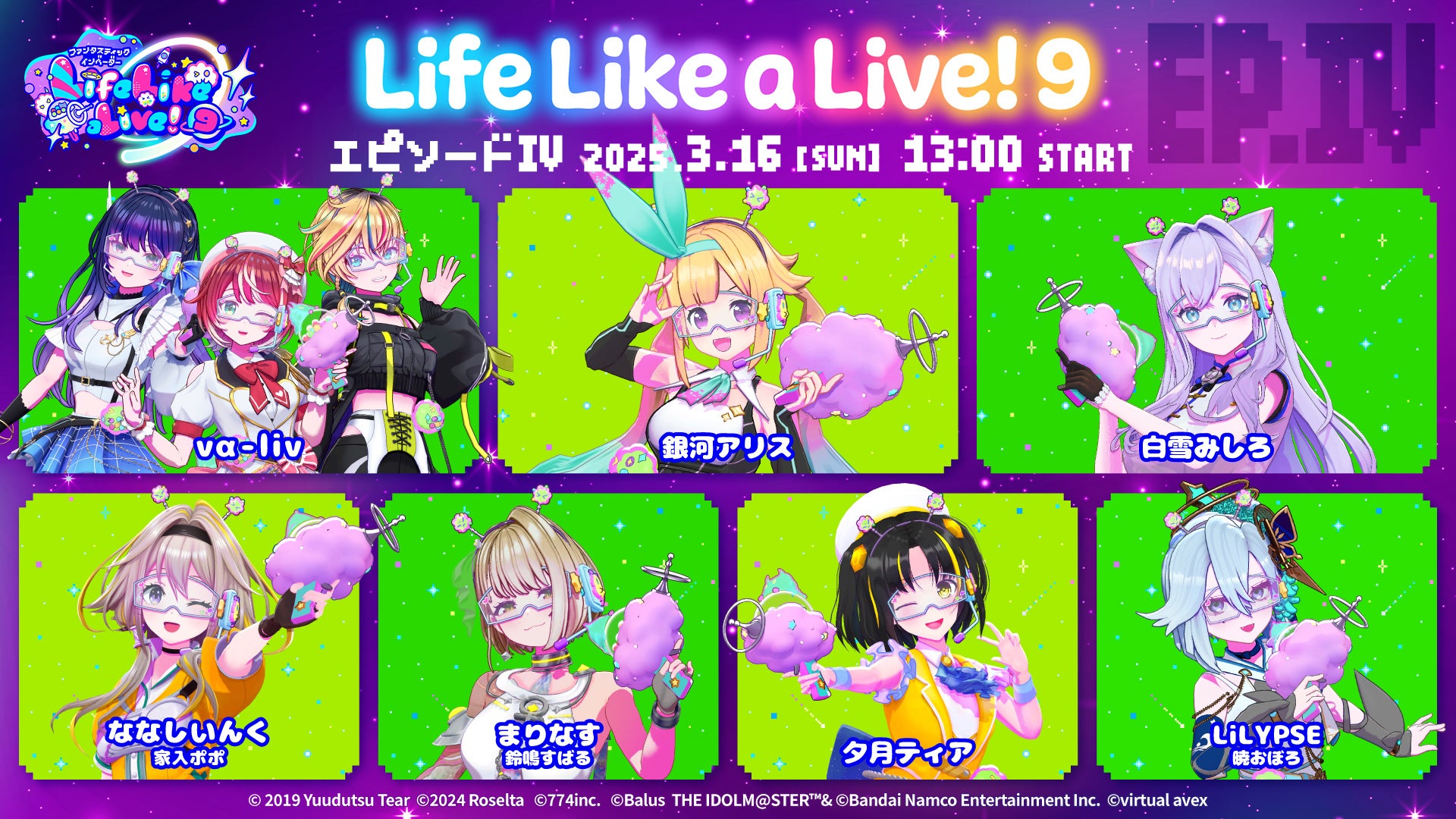 また、2025年3月8日(土)にLife Like a Live!9イベント直前生配信を公式YouTubeにて配信予定です。