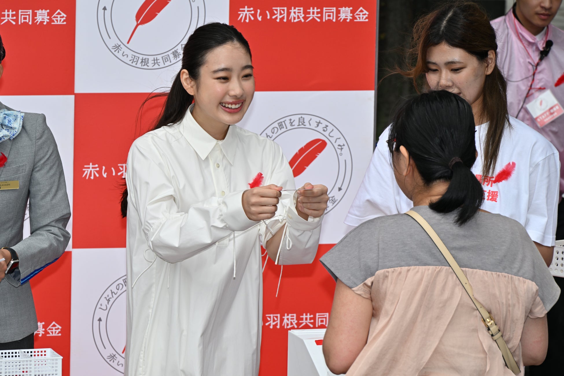 NHK大河ドラマ「光る君へ」藤原妍子(きよこ)役の倉沢杏菜さん、大相撲の東関親方らが、赤い羽根共同募金の助成を受けて活動する団体の皆さんと共に、募金や協力を呼びかけました。