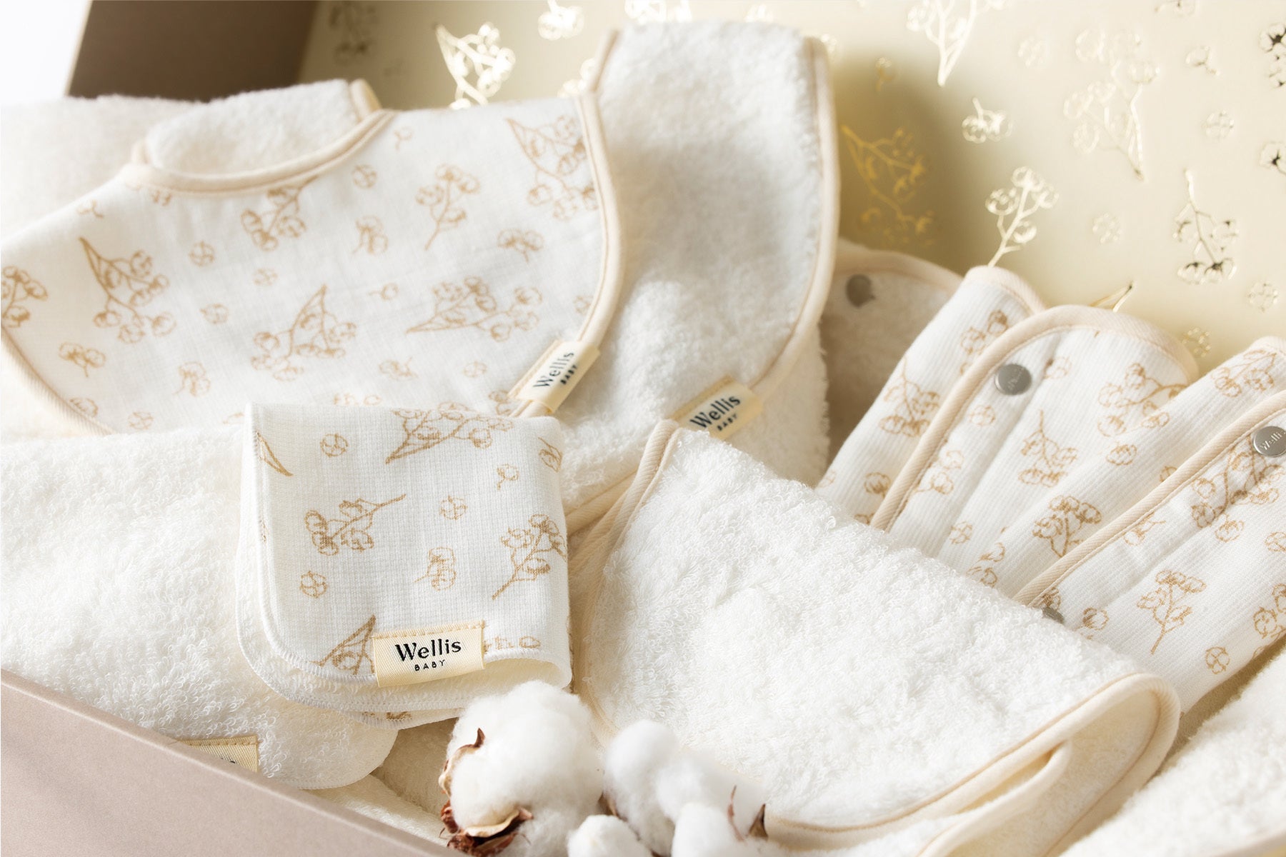 Wellis BABYは「大切なお子様を真綿のように優しく、やわらかに包みこむようなベビーグッズがあれば」という想いから生まれました。