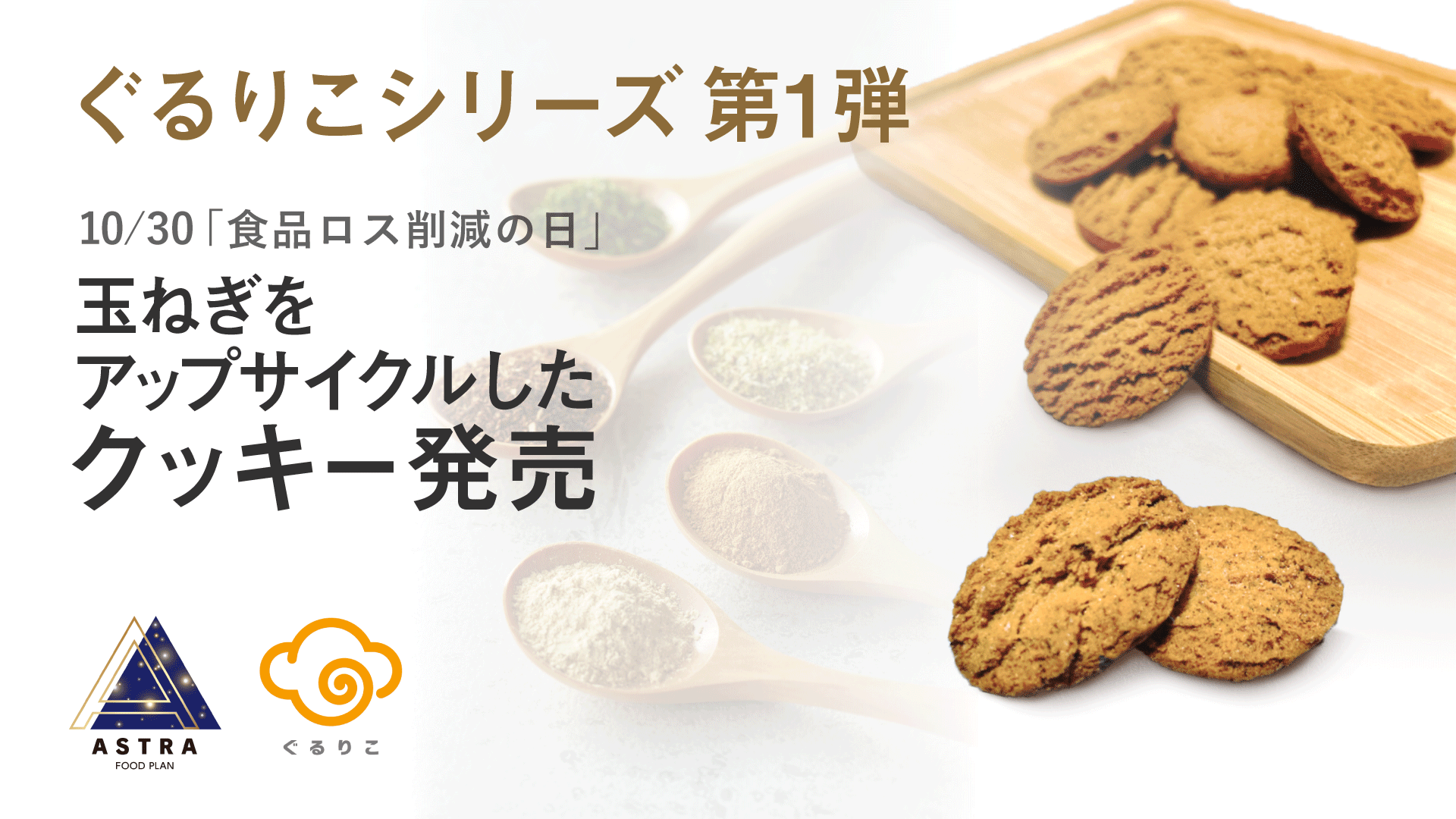 『ぐるりこ©』シリーズ第一弾。「食品ロス削減の日(10月30日)」に、玉ねぎ端材をアップサイクルしたクッキーが販売開始。