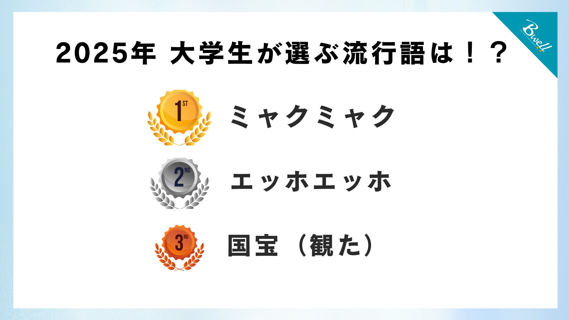 大学生市場に特化したマーケティングをはじめ、国内外人材の採用支援サービスを展開している株式会社ビーウェル(本社:大阪府大阪市 代表取締役:大亀雄平 以下 当社)は日本全国の大学生(Z世代)を対象に「2025年の流行語」に関する調査を実施いたしましたことをお知らせいたします。今回の調査では、選ばれた流行語の使用状況や背景についても深掘りし、大学生(Z世代)のトレンドを探ります。