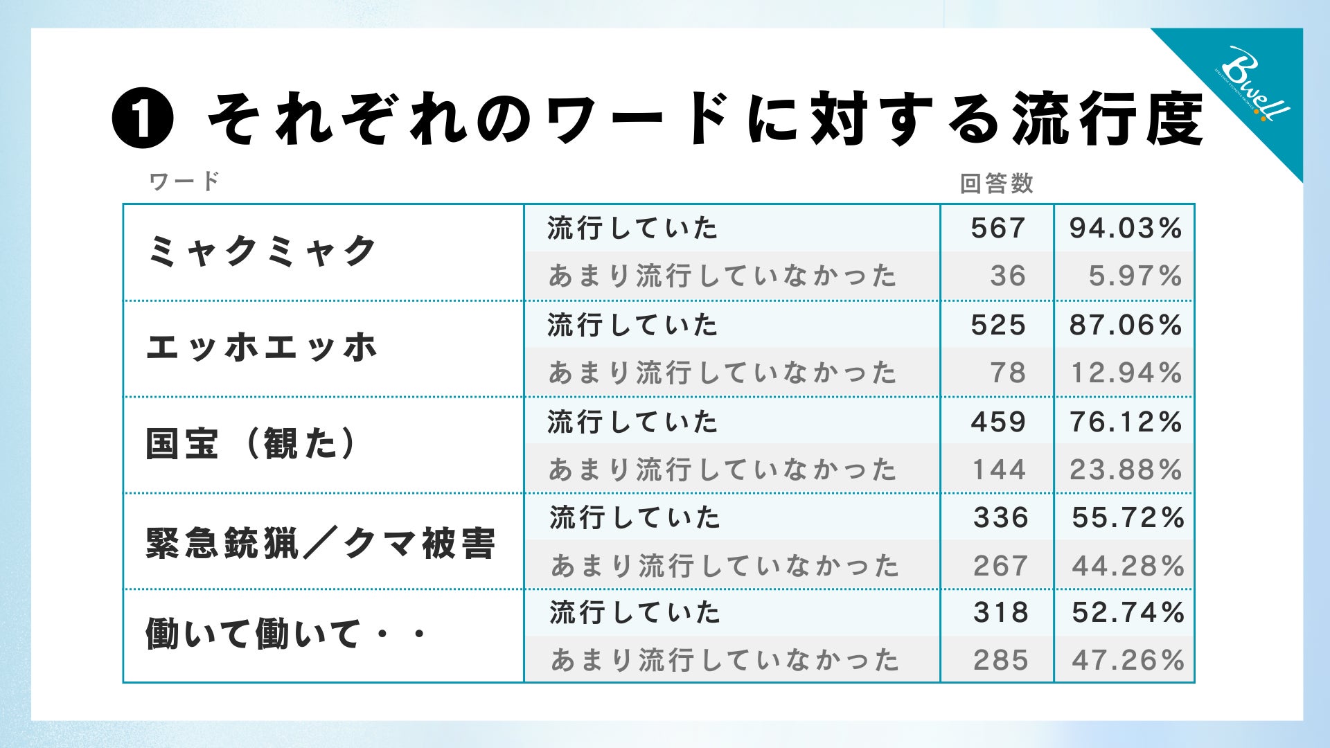今回のアンケート調査ではTOP3以外にも様々なワードの流行度を測ることができました。