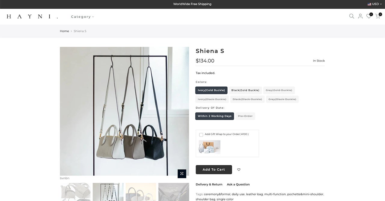 通販ECサイト「HAYNI.(ヘイニ)」は、レディースバッグを中心とした国内外商品を扱うセレクトショップです。