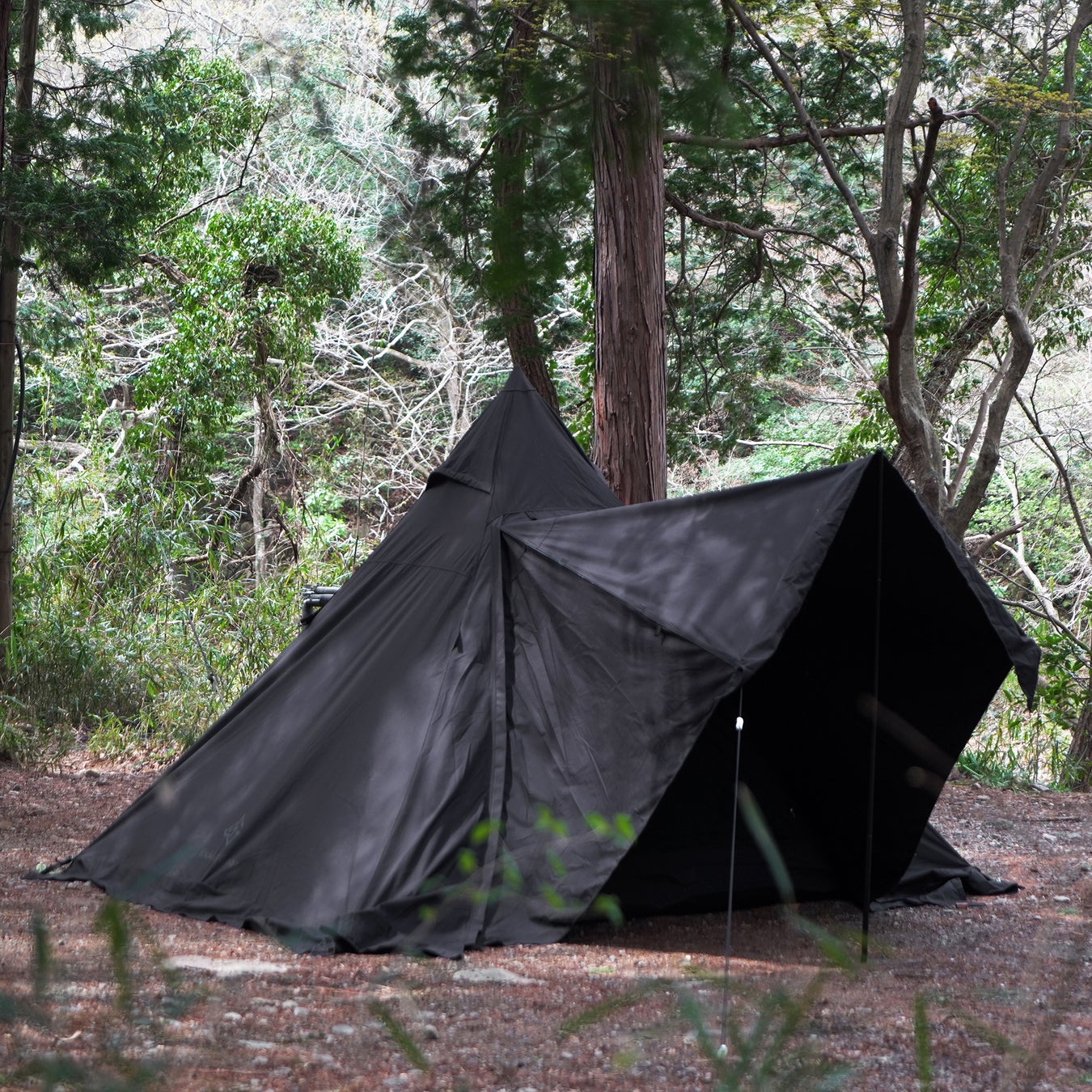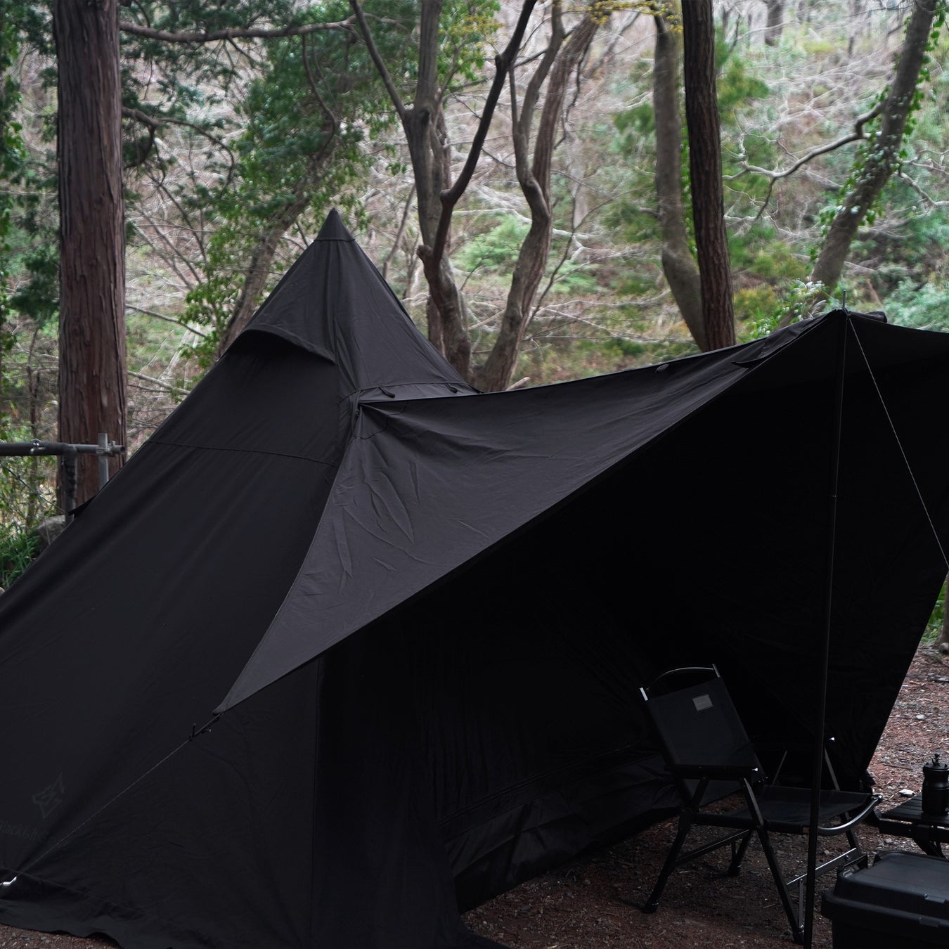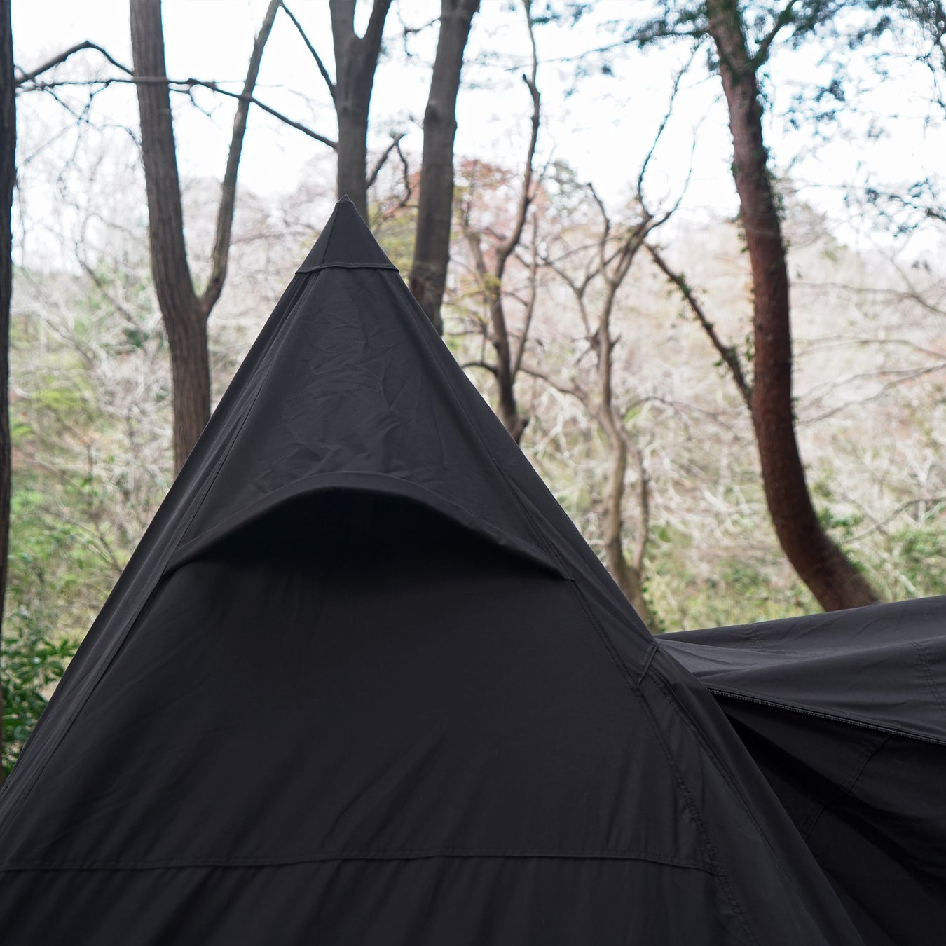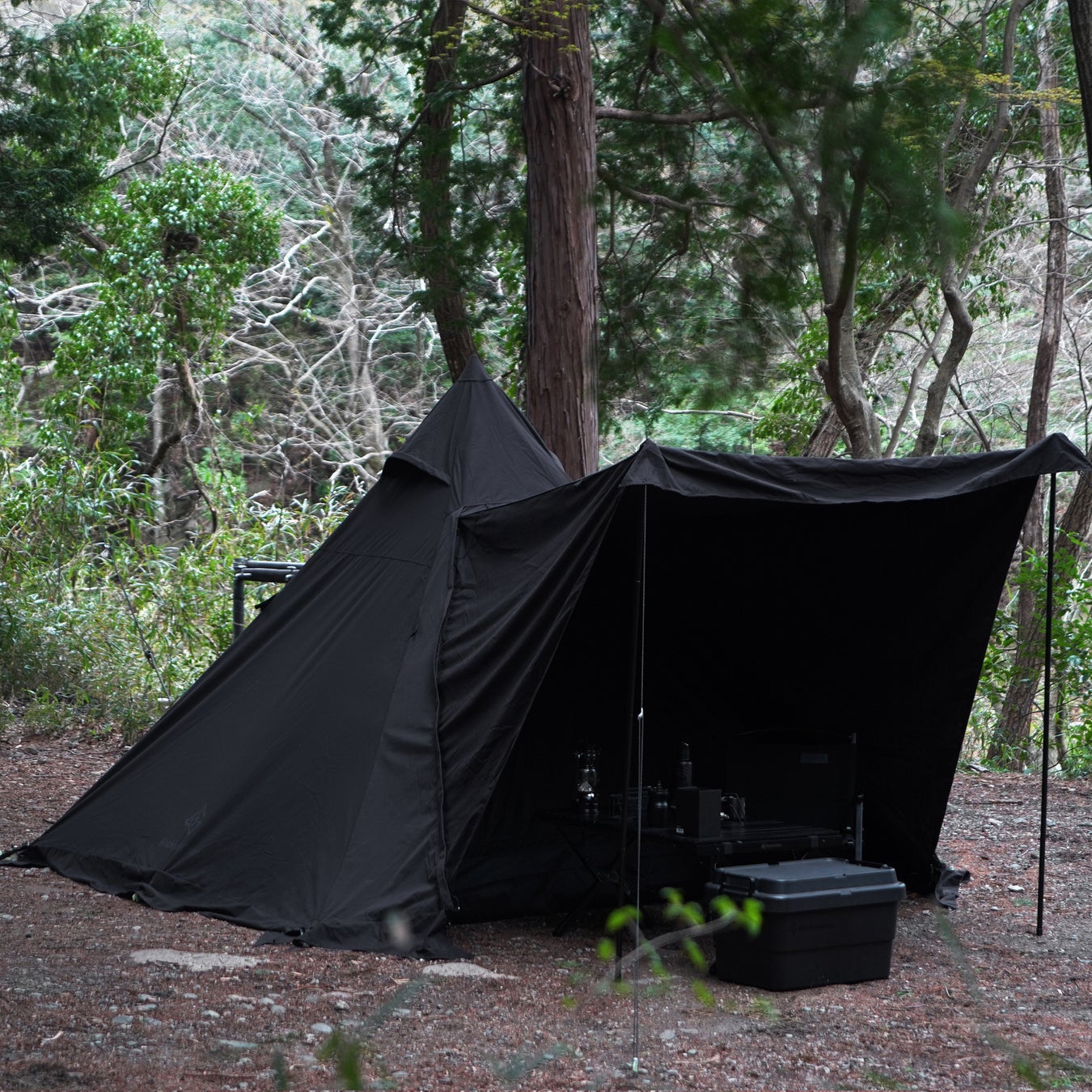 BLACK TIPI V2(ブラックティピーV2)最大の特徴は前室のキャノピーを自由にカスタマイズできること。