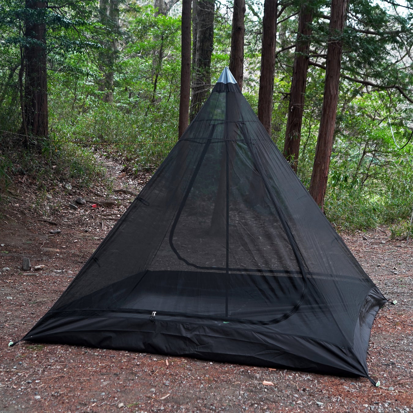 BLACK TIPI V2(ブラックティピーV2)には最大2人寝ることができるメッシュのフルインナーテントが付属しています。