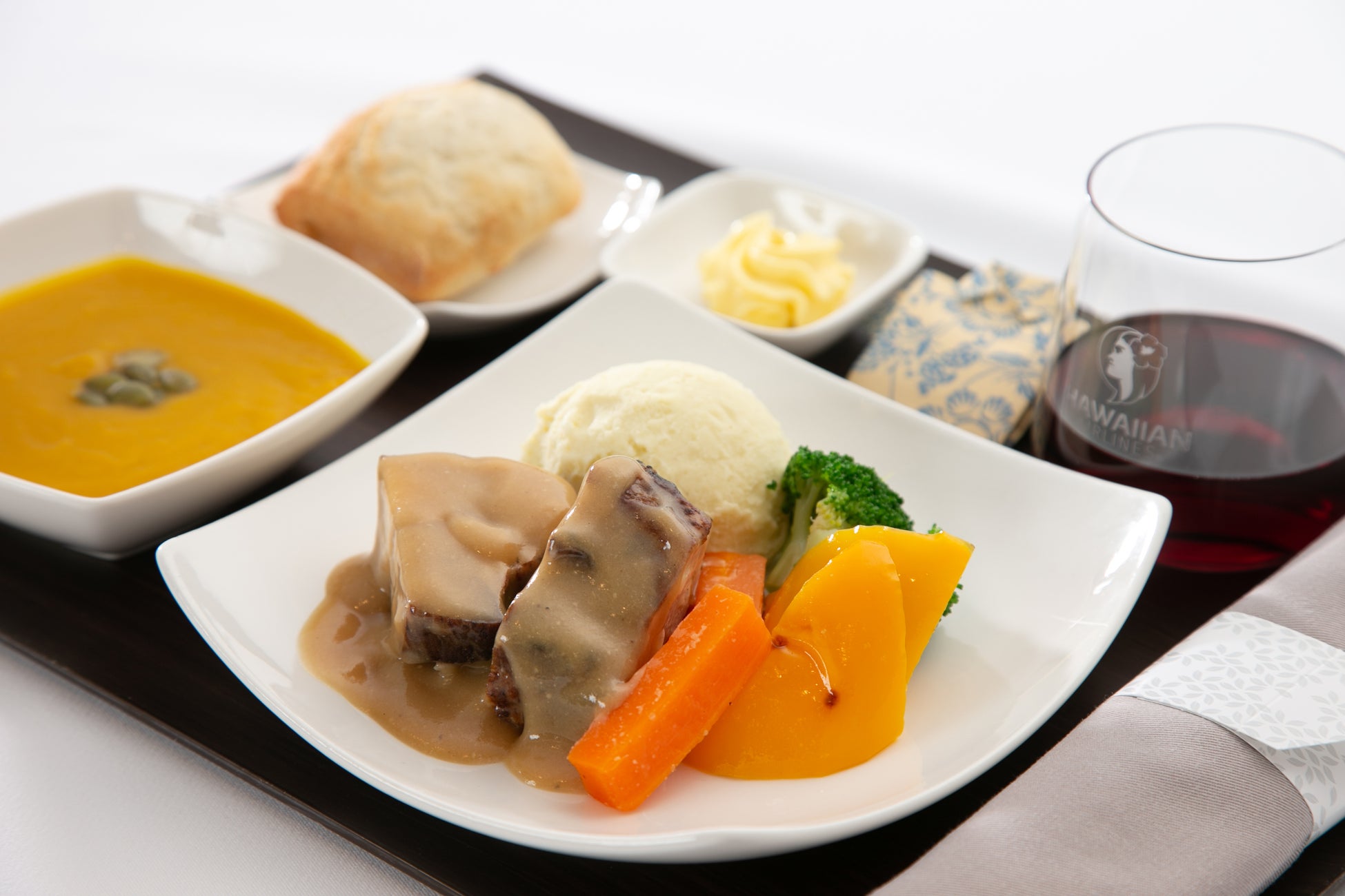 ハワイアン航空の機内食の詳細は、https://www.hawaiianairlines.co.jp/our-services/in-flight-services/dining-and-drinks/menus/japan-press-release をご覧ください。