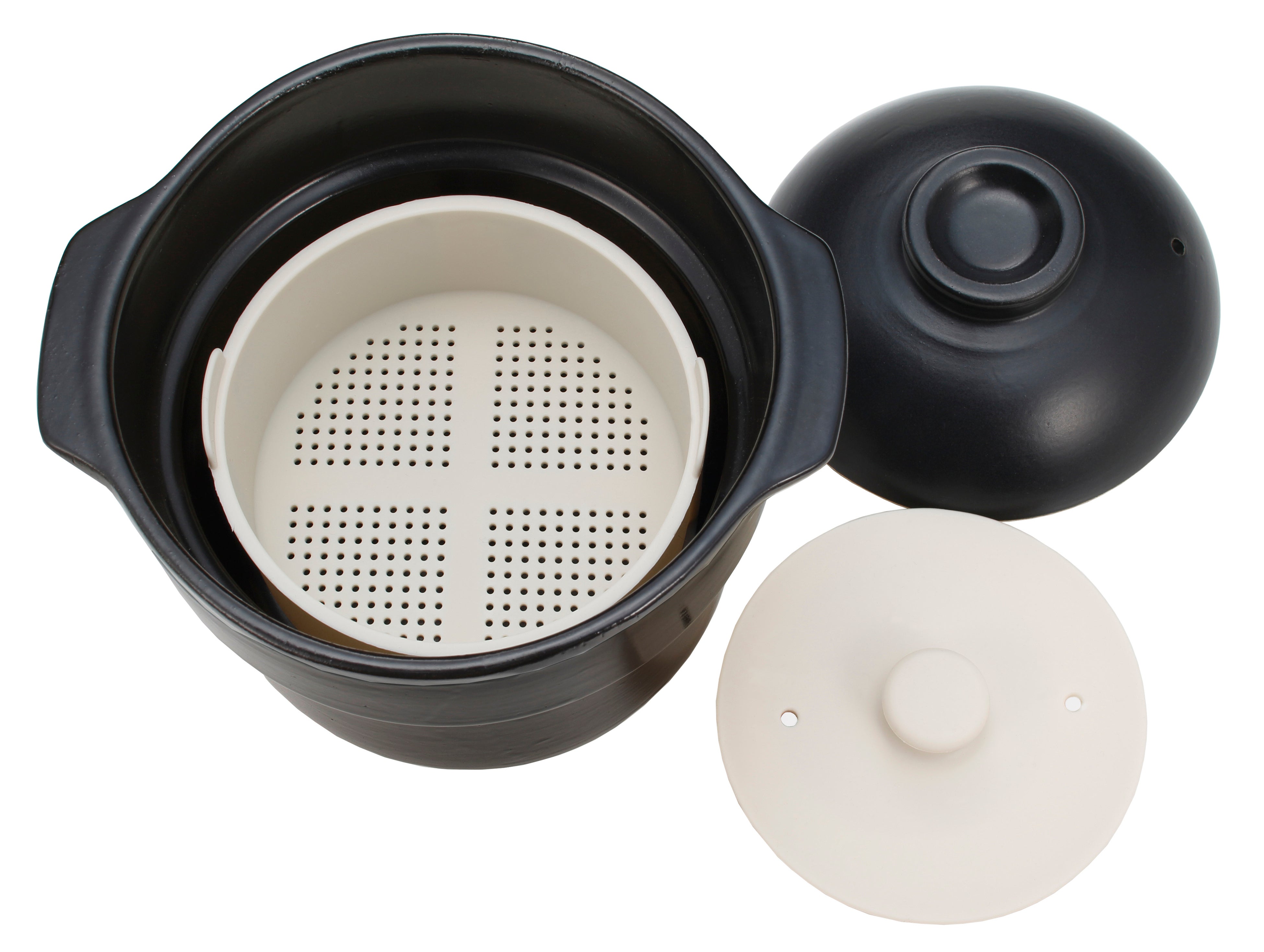当商品の炊飯では1合の土鍋ご飯が電子レンジなら10分で炊けます※。おこげが嬉しい炊き込みご飯は直火で炊くのがお勧めです。毎日の食事やお弁当に欠かせない煮物が電子レンジなら材料を入れて時間をセットするだけ、調理に時間のかかる根菜の煮物も簡単に仕上がります。蒸し料理は付属のシリコントレイを土鍋にセットして、野菜や鶏肉、きのこなどお好みの食材を蒸し上げます。素材の味を引き出しふっくら仕上がる蒸し料理はとてもヘルシーです。トレイはシリコン製なので、焼売や肉まんの皮がこびりつかずお手入れも簡単です。その他1人用のおでんやラーメン鍋として、また電子レンジでのパスタ調理などにも使える万能な調理器具としてご使用いただけます。