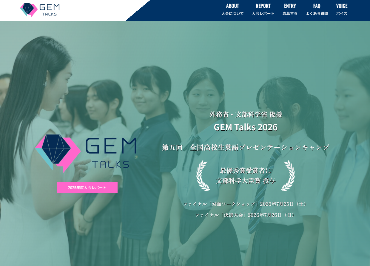 外務省・文部科学省後援 第5回 全国高校生英語プレゼンテーションキャンプ「GEM Talks 2026」予選応募を3月1日から受付開始