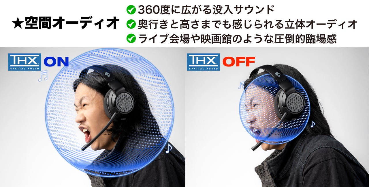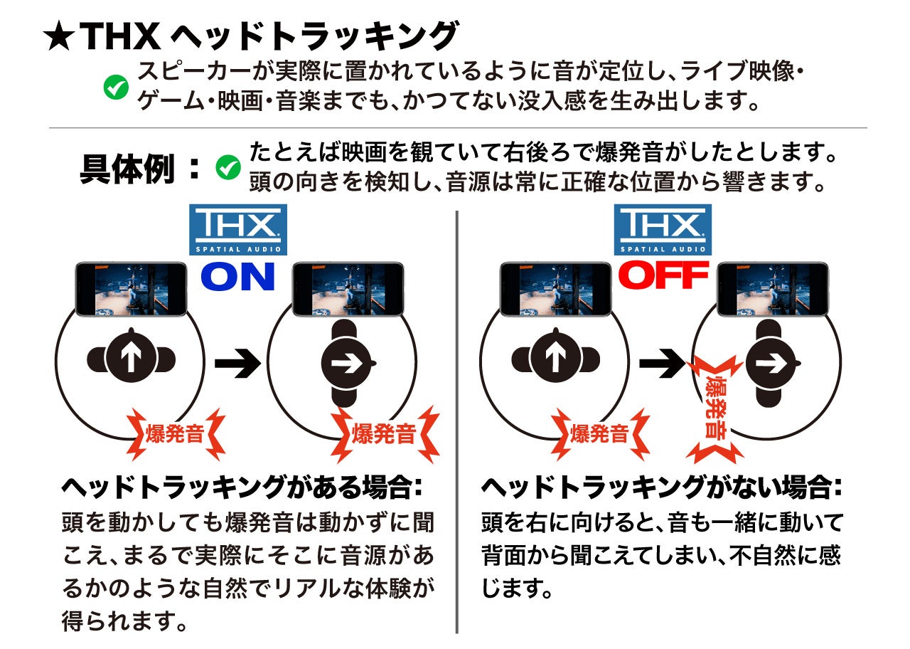 THX®のヘッドトラッキング技術を搭載しており、頭の動きをリアルタイムに反映し、音の方向や距離感を忠実に再現します。さらに専用アプリと接続すれば、ヘッドトラッキングの位置調整が可能。プレイヤー1人ひとりに最適化された空間オーディオ環境を構築し、ゲームの世界に完全に没入できます。
