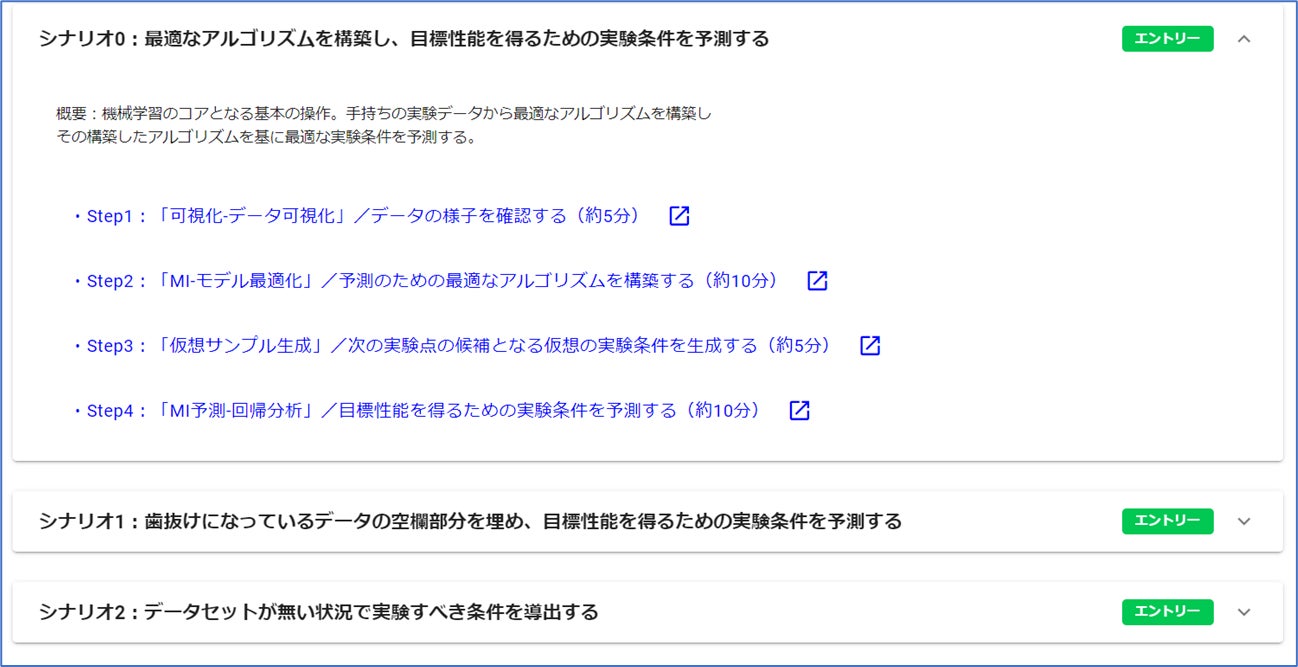 ・チュートリアルセクション:解析シナリオを通じて、機械学習の基礎とデータ解析の流れを学習