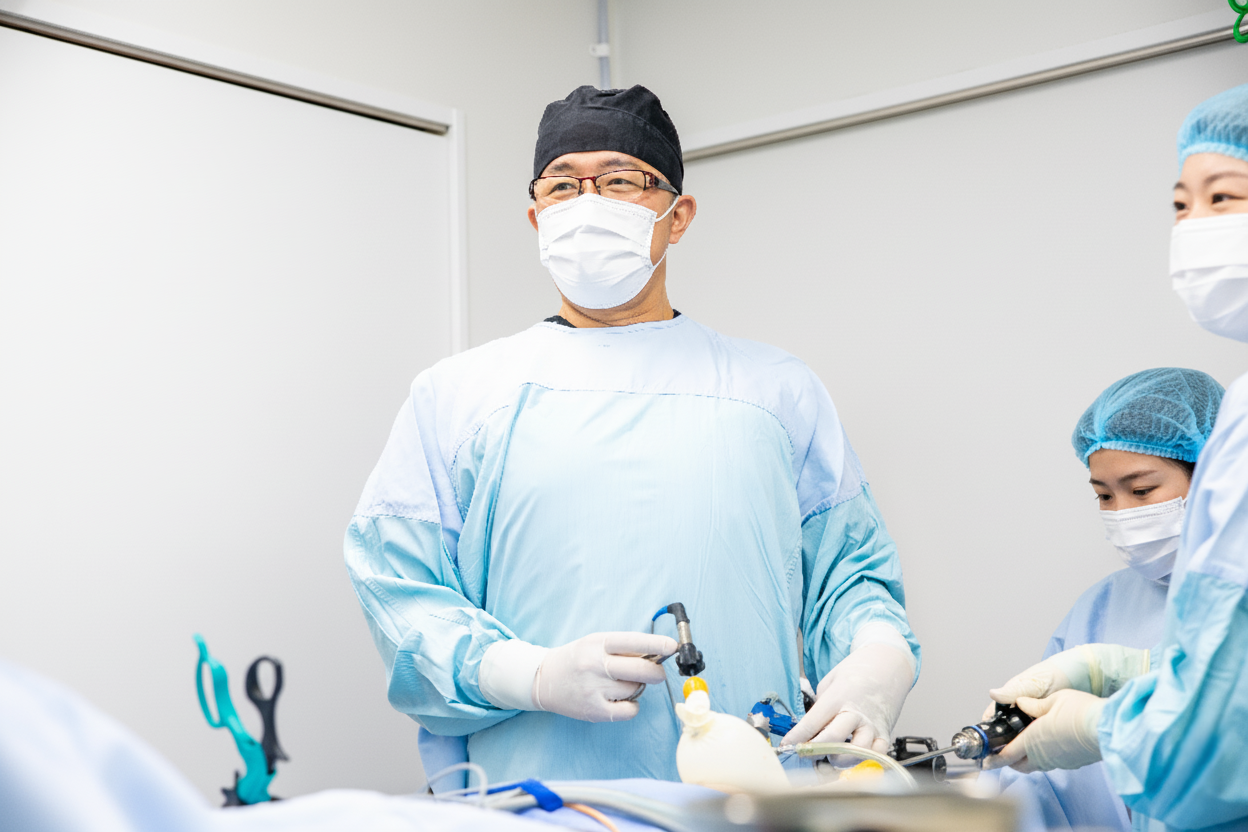Gi外科クリニックは、日本で初めて“傷が一つでお腹に入らない腹腔鏡日帰り手術(SILS-TEP法)”を導入しました。