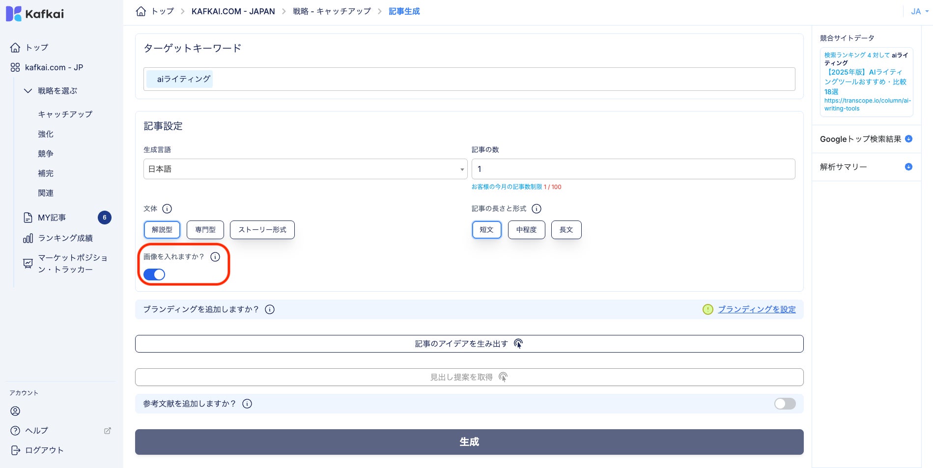 AIコンテンツ生成・SEO支援ツール Kafkai(カフカイ)、新機能「記事画像」を正式リリース