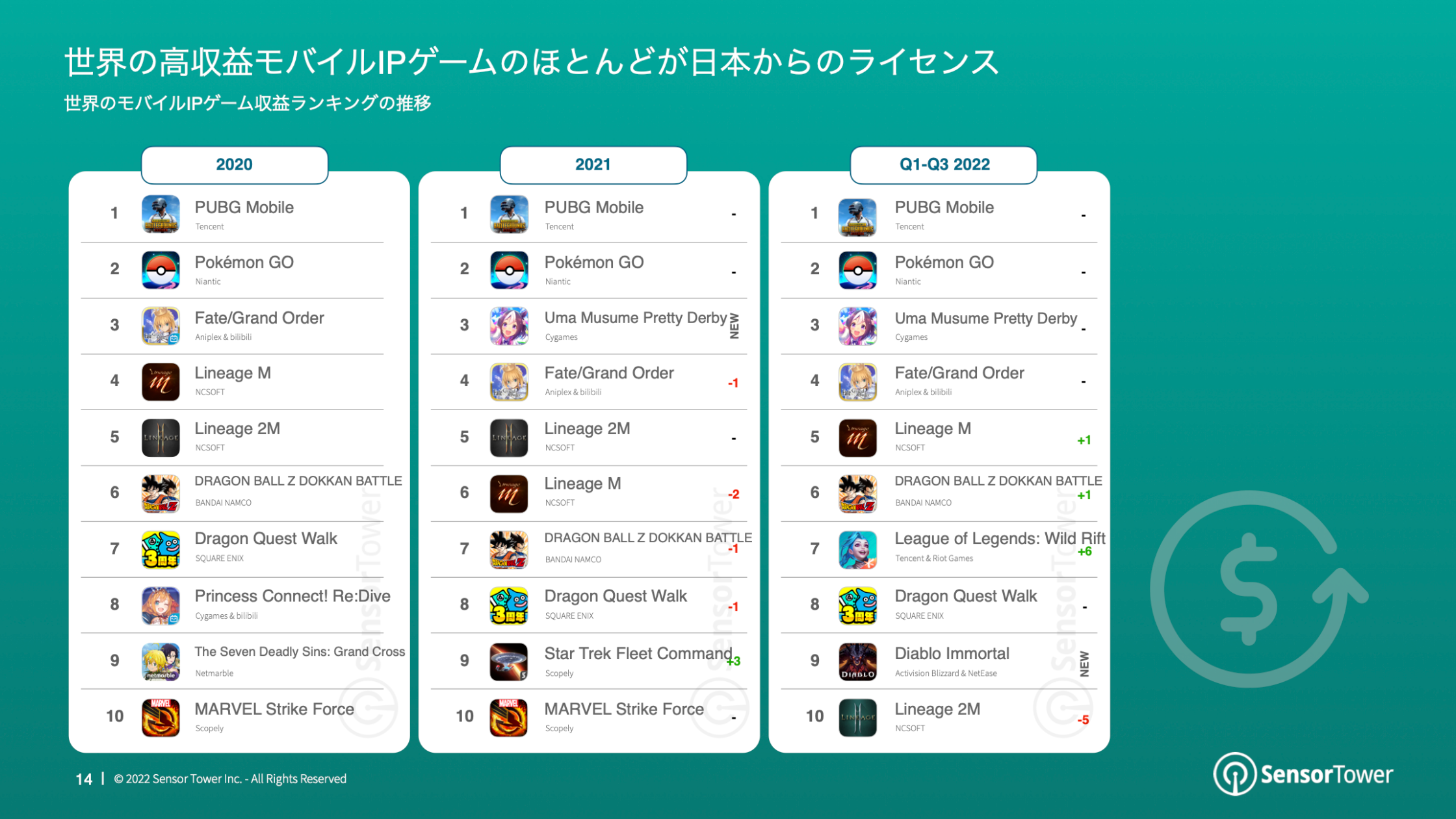 世界の高収益モバイルIPゲームのほとんどが日本からのライセンス