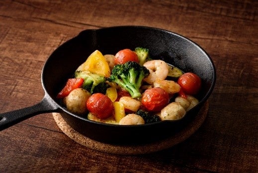 ①海老と彩り野菜のアヒージョ風(2人前)/1,050円(税込)