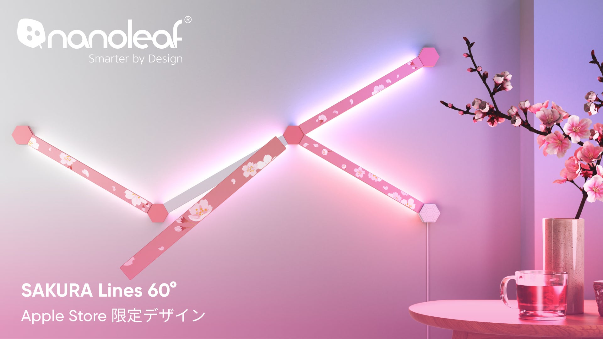 【新製品発売】Nanoleafが春らしい桜柄のスマートライトシリーズ第2弾となる「SAKURA Lines 60°」をApple Store限定で販売開始。