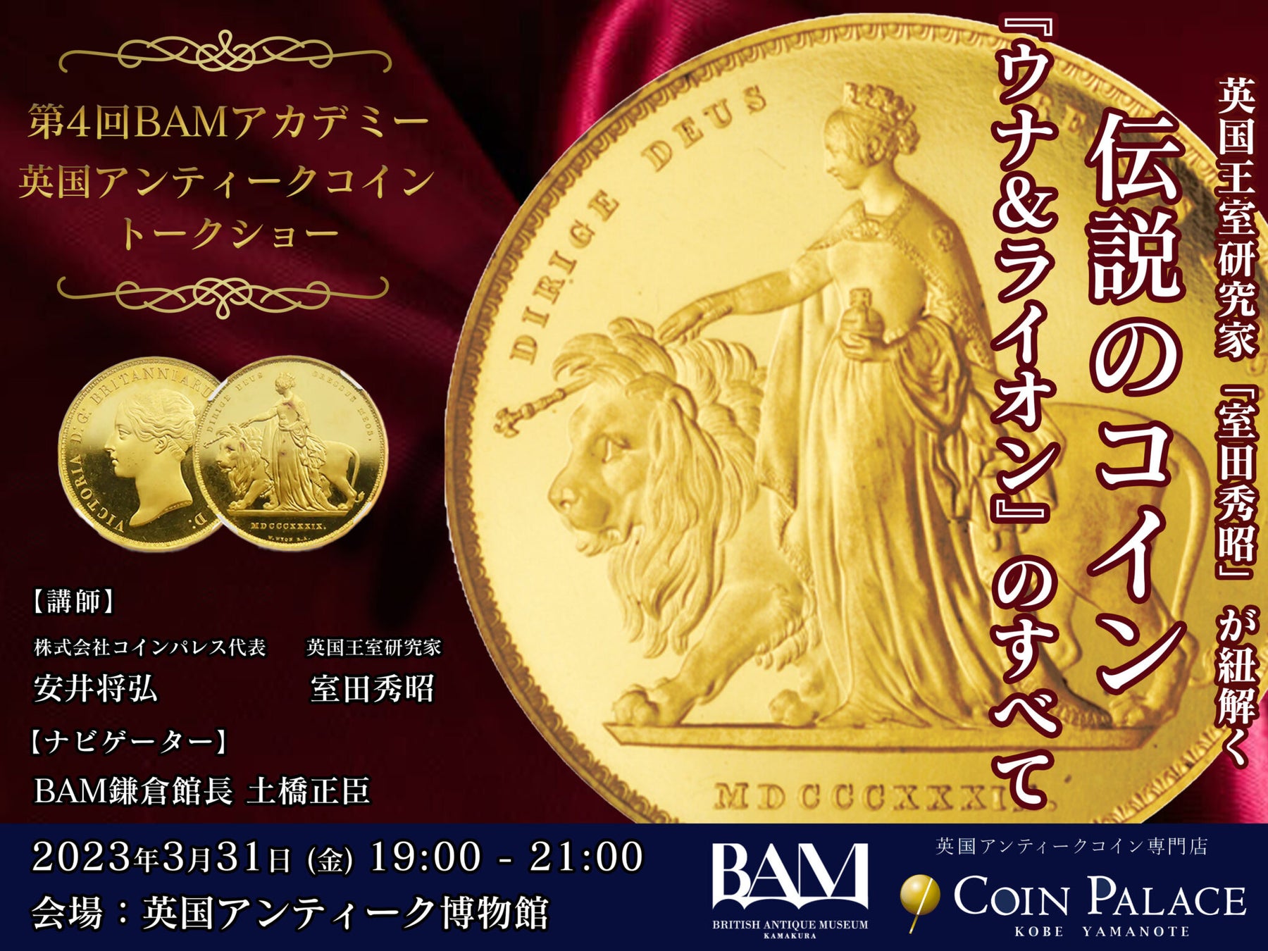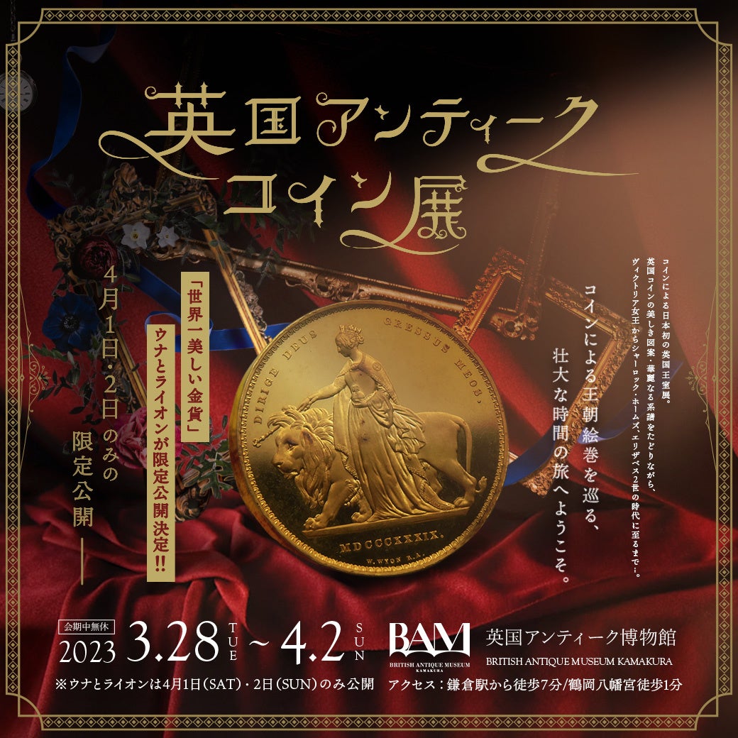 「英国アンティークコイン展」を開催!3月28日から英国アンティーク博物館BAM鎌倉にて。世界一美しい金貨『ウナとライオン』一般公開!