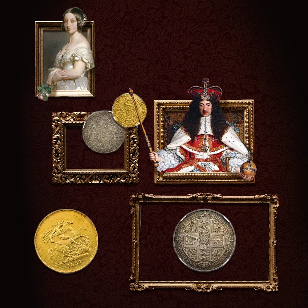 英国王室の歩みと共に作られたアンティークコイン。今日に至るまでにコインは多くの人の手に渡り、様々な運命を辿ってきました。時代を創造し、導いた歴代国王とその当時の最高峰の技術が刻まれた貴重な品々が、この度一挙に登場。英国の華麗なる系譜をたどりながら、各時代を代表する秘蔵のコレクション をご紹介いたします。