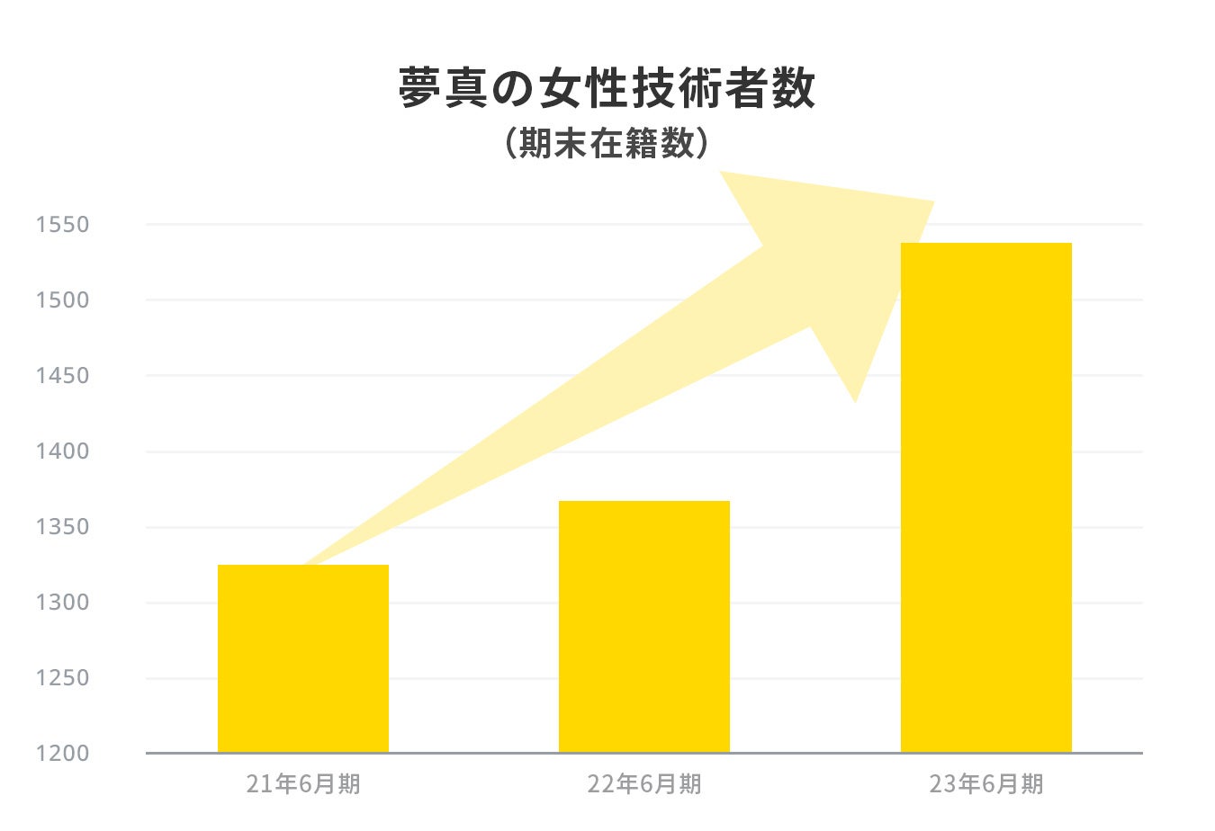 夢真では以前より女性のCADオペレーターを技術職として採用しており、業界に先駆けて女性施工管理技術者の採用も始めました。令和になってから建設業界では女性の活躍の場が大きく広がり、夢真でも女性の採用を2021年からさらに積極的に行ってきました。 夢真に在籍する女性社員は直近2年間で15%も増加しています。