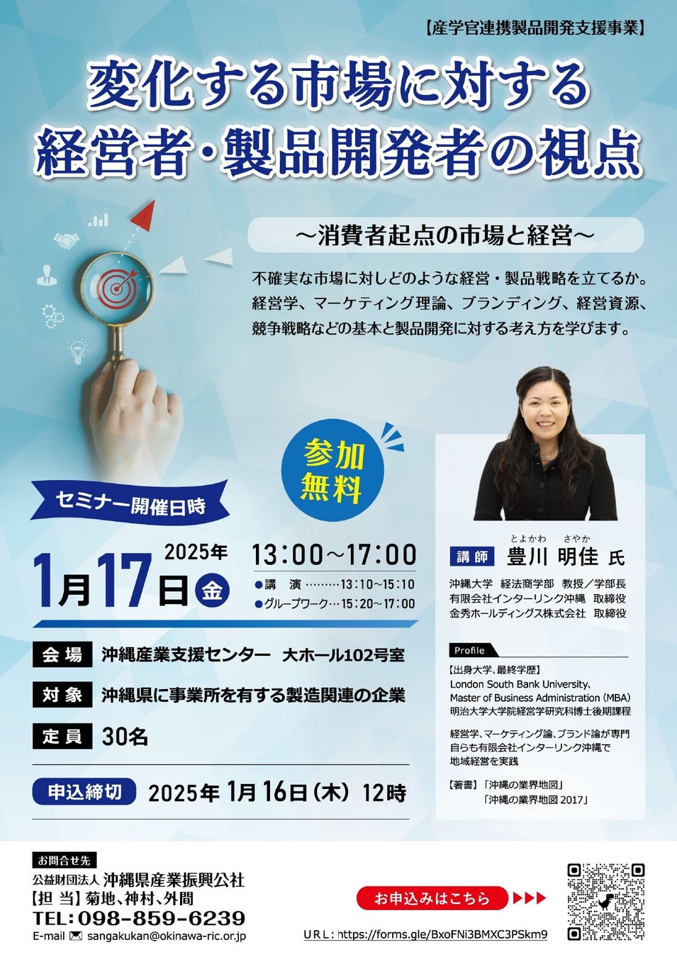 沖縄県産業振興公社では、「変化する市場に対する経営者・製品開発者の視点~消費者起点の市場と経営~」と題し、製品開発に関するセミナーを開催します!