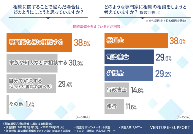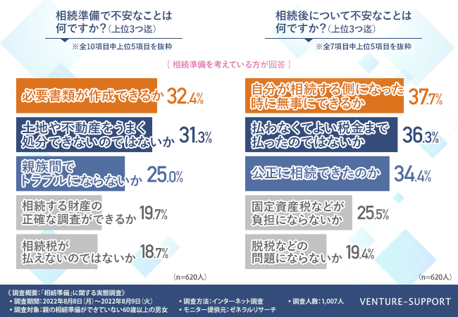 ベンチャーサポート相続税理士法人 (東京都中央区 代表税理士 古尾谷裕昭 https://vs-group.jp/sozokuzei/supportcenter/)は、「相続準備」に関する実態調査を実施しましたので、お知らせいたします。