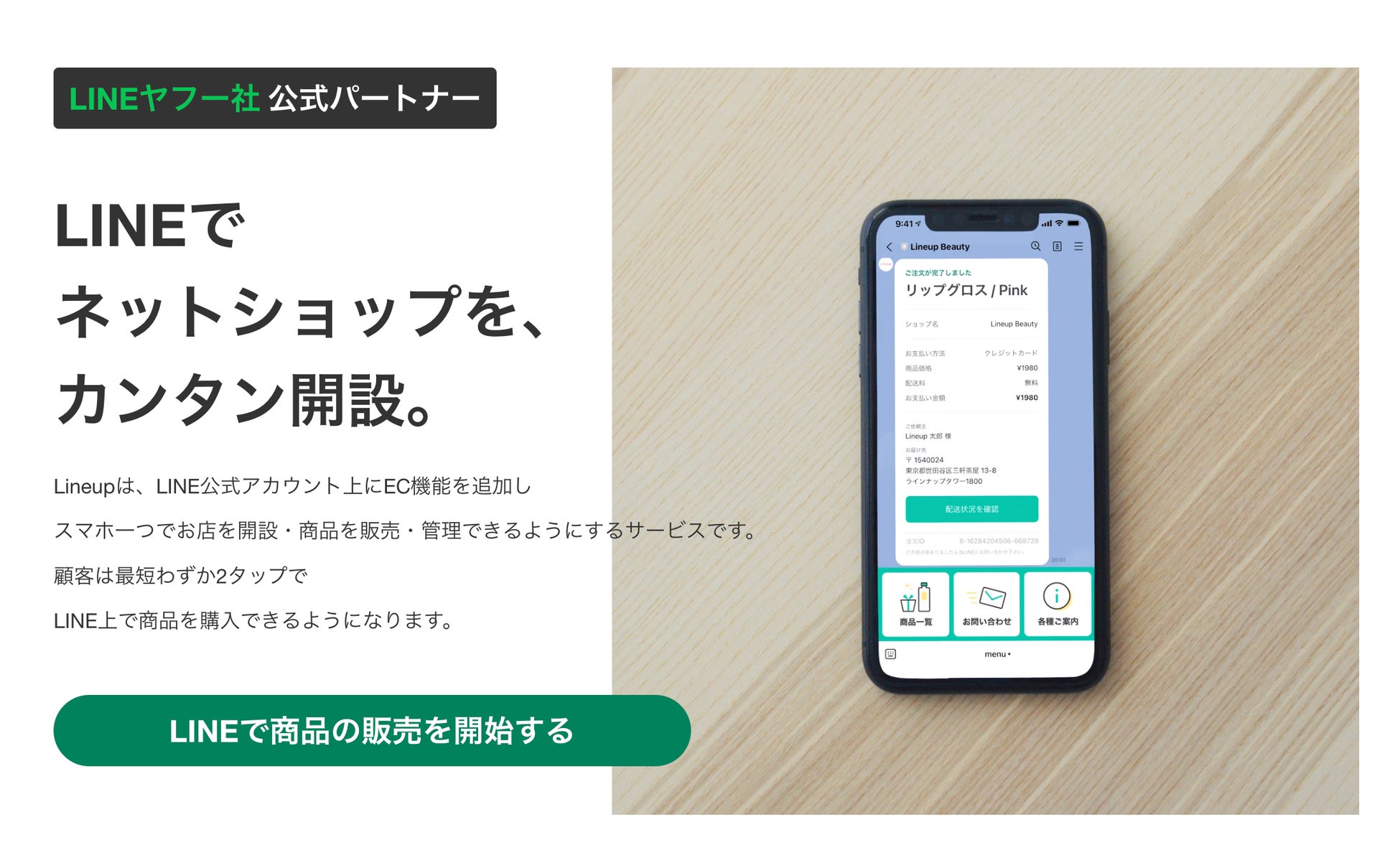 Lineupは、LINE公式アカウント上で商品を販売・管理できるようにするサービスです。