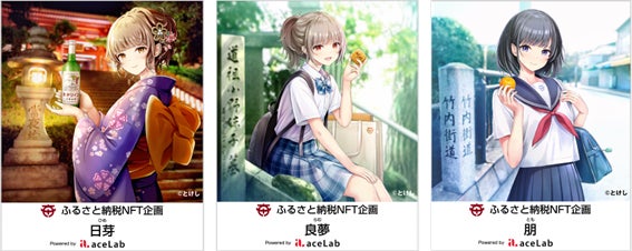 ◆ イラストレーター“とけし”について:質感や光の表現を大切にした、凛として、品のある優しいタッチの女性の絵がSNSでも話題になり、今回はじめてふるさと納税NFTに提供。株式会社aceLab所属。とけ茶房:https://tokesabo.com/