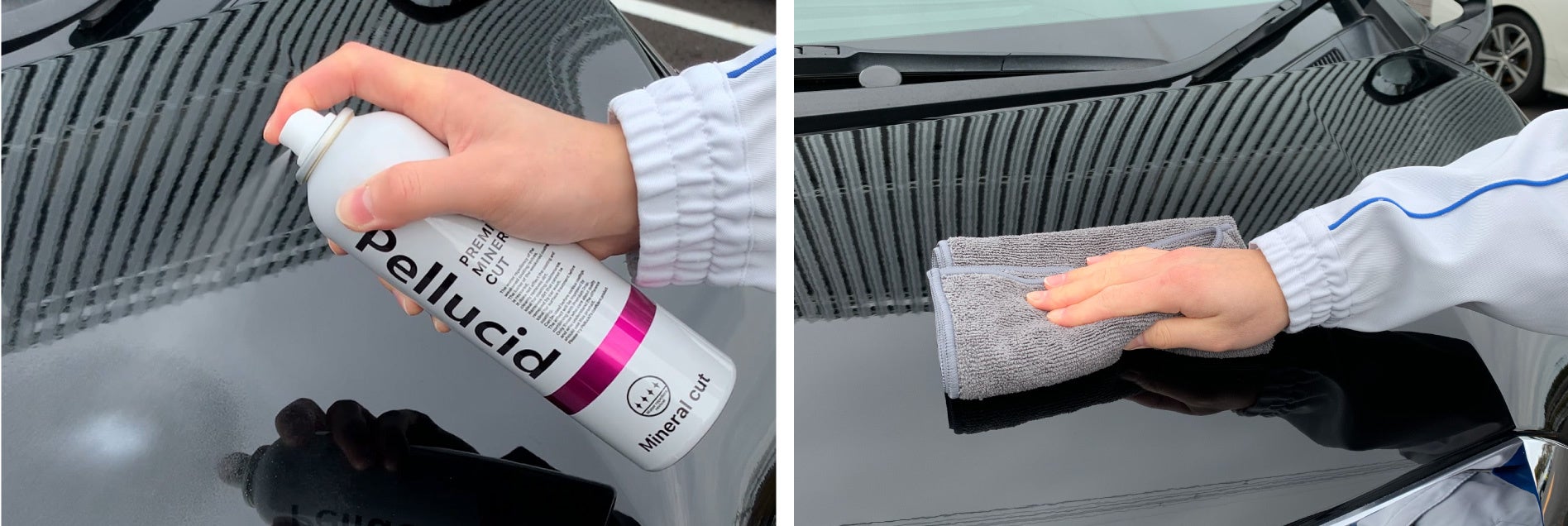 プレミアムミネラルカットをコーティング前に施工することで、ボディに付着したミネラル膜を除去でき、コーティングをワンランク上の仕上がりに。