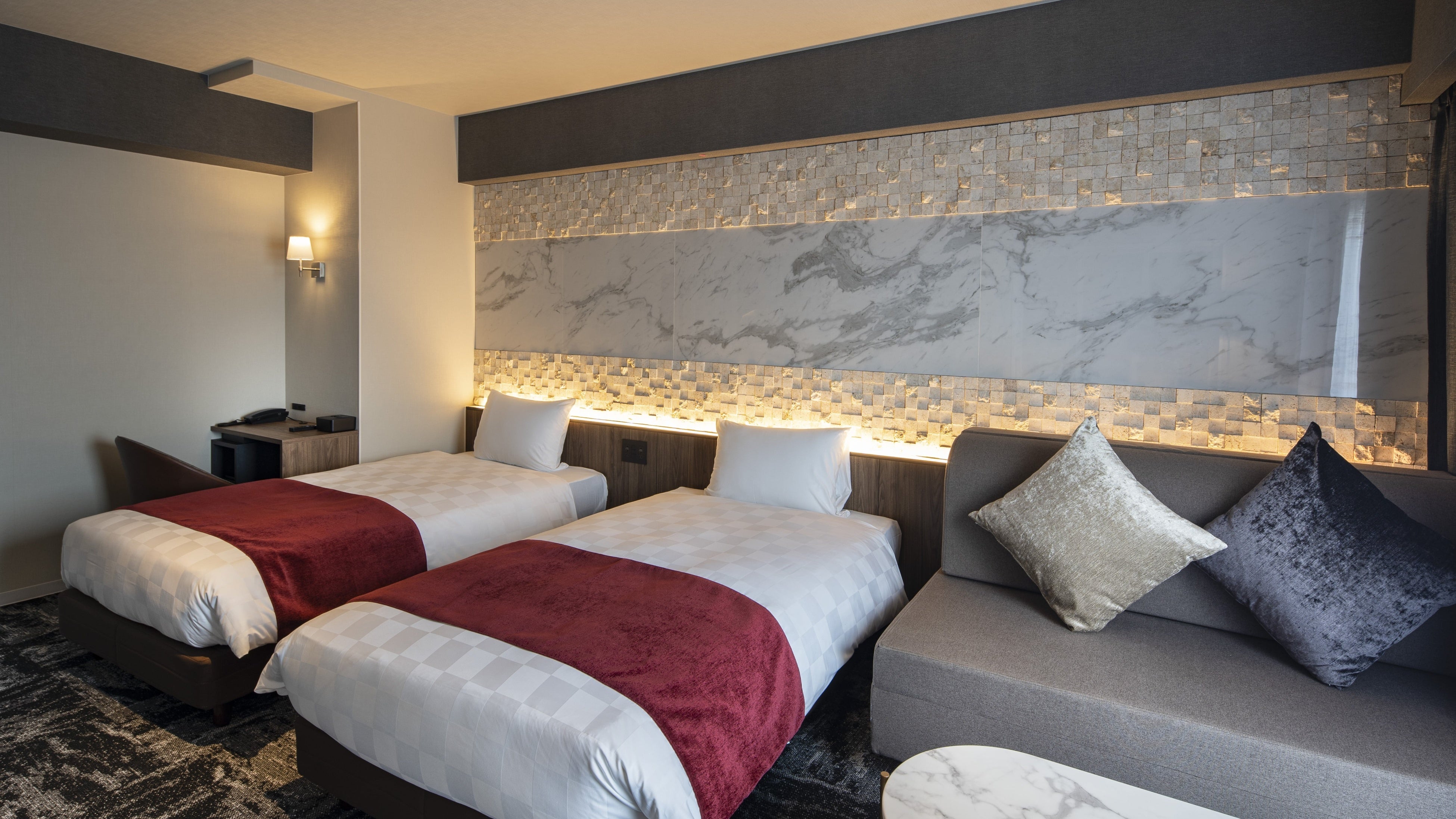当ホテルは2021年に新規開業した「Willows Hotel 大阪新今宮」をthe b hotelsとして新たにリブランドしたものです。賑やかで活気のある新世界のエリアにありながら、ホテル館内はシックでラグジュアリーな雰囲気を感じられるデザインとなっており、一歩足を踏み入れるとリラックスしたお時間をお過ごしいただけます。