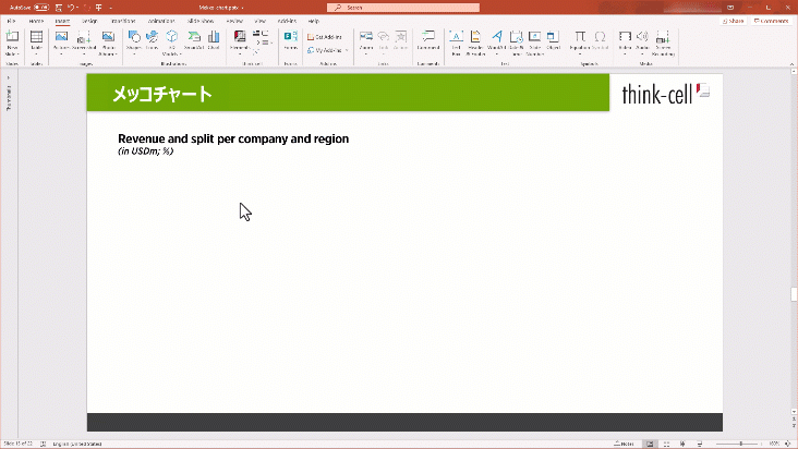 キャプション:think-cellを活用してメッコグラフ(面積グラフ)をパワポで瞬時に作成する様子