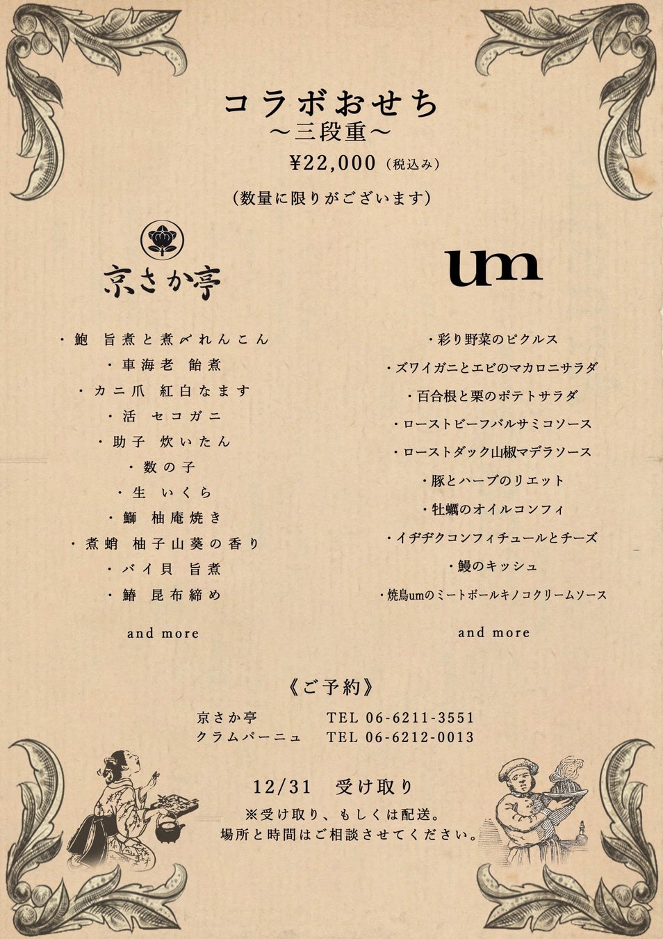 【umグループは年末年始も通常営業!『京さか亭』との和×洋の豪華コラボおせちのご予約も受付中。】