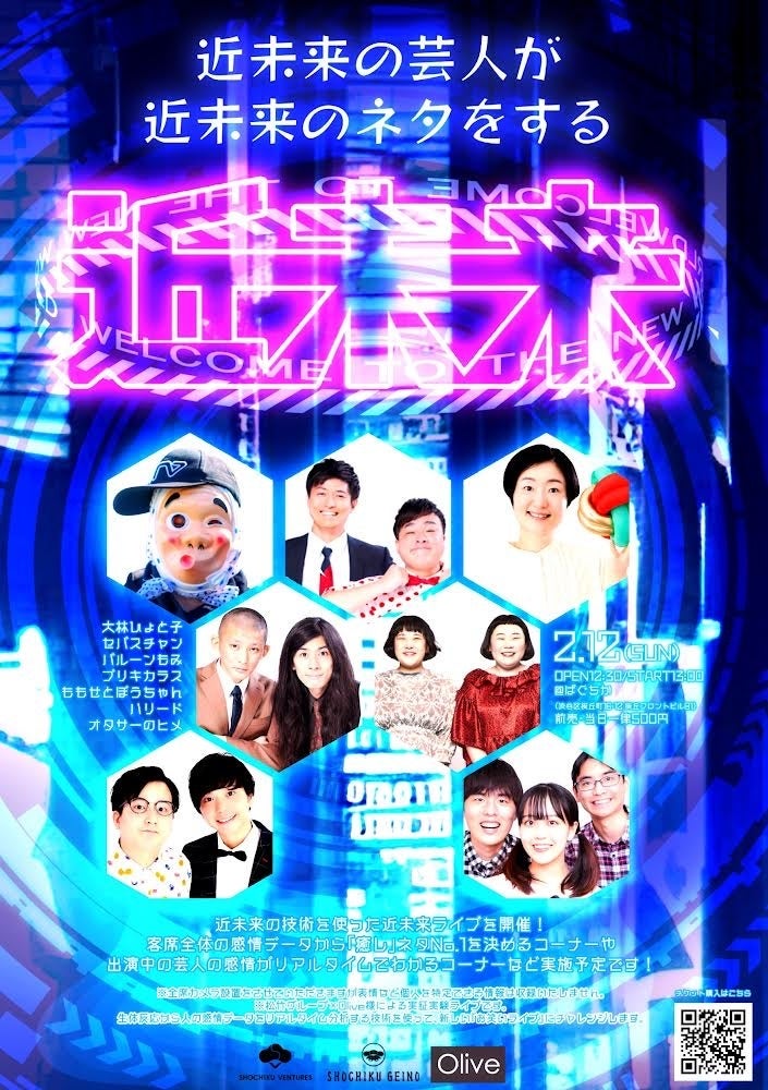 松竹株式会社の子会社でベンチャーへの出資や協業を推進するCVCの松竹ベンチャーズ株式会社(以下、松竹ベンチャーズ 代表取締役社長:井上 貴弘)と、お笑いライブの興行や、タレントや俳優の養成や、イベントの企画、運営等を行う松竹芸能株式会社(以下、松竹芸能 代表取締役社長:関根 康)、独自の技術で人の生体データを取得し、「感情の視える化」によって察してくれる社会の実現を目指すOlive株式会社(以下、Olive 代表取締役社長:竹内 精治)は、お笑い芸人からお客様まで、会場にいる全員の感情データをリアルタイムで取得し、芸人の感情の変化で展開が変わる企画や、お客様の感情で順位が決定する、新たなライブエンタテインメントの創出に向けた実証実験を行いました。
