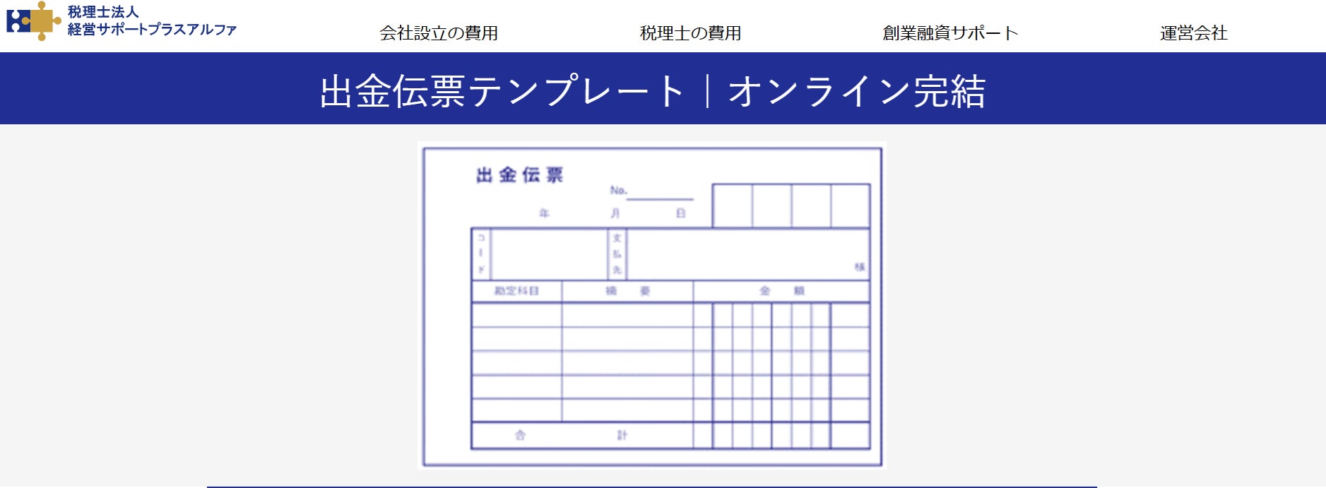「出金伝票テンプレート」:https://keiei-support-plus-a.com/zeirishi-hiyou/shukkin-denpyou-template/