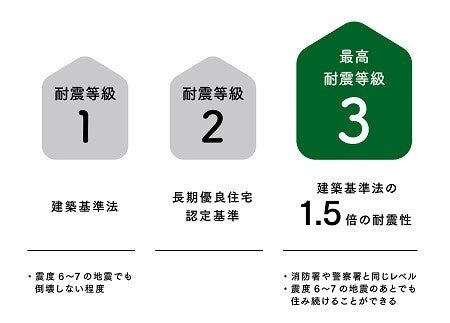さらに超高層ビルと同じ構造柱直下率100%という完璧なフレーム構造で、地震の震度7が2回来ても耐えうる最高耐震等級3を実現しています。
