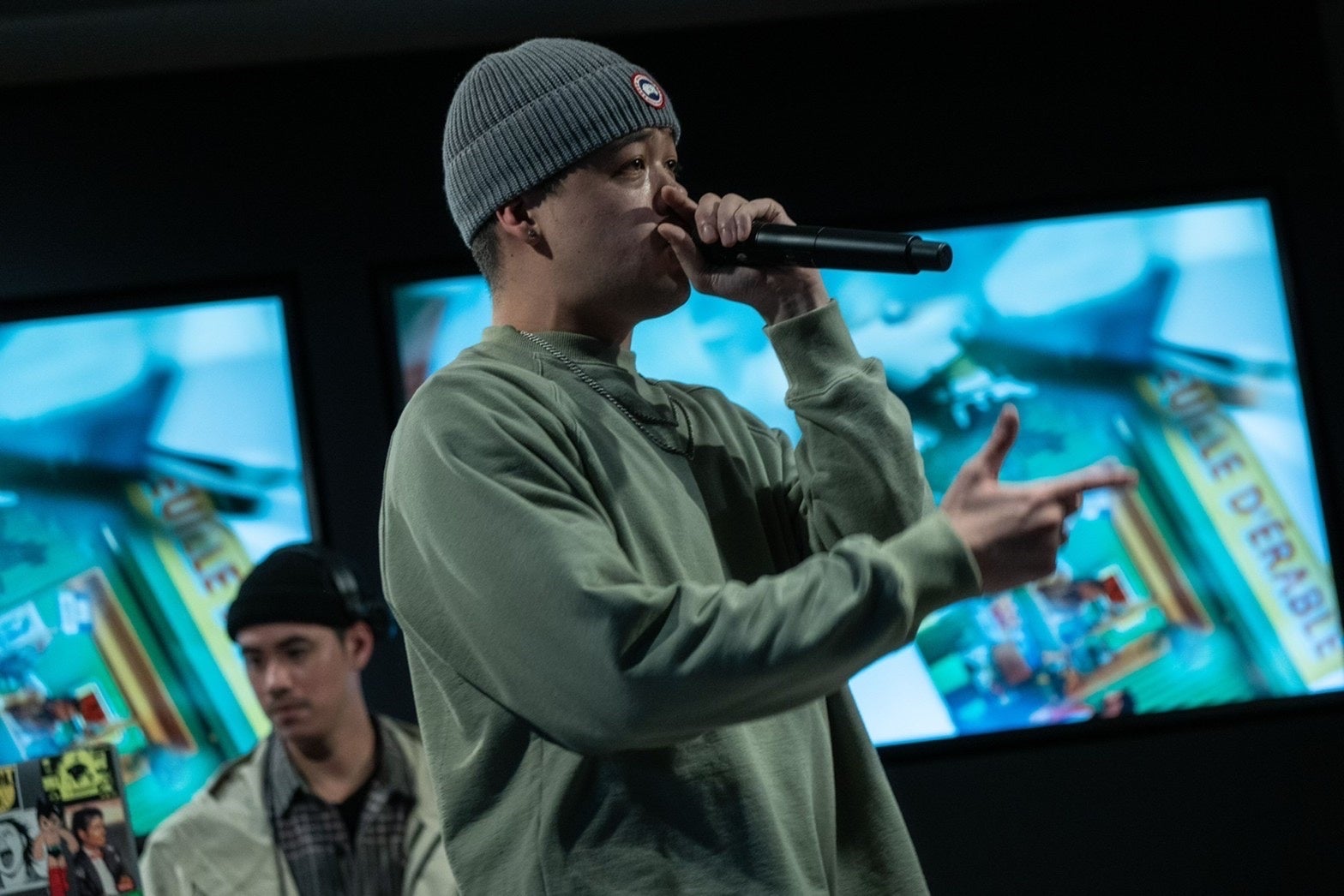 そして、メインパフォーマンスで出演したのは日系アメリカ人アーティストのMIYACHI(ミヤチ)。NYLON JAPAN、Ollieなど国内の有名ストリートファッション誌にモデルとして起用されるなど、アジアを代表するラップアーティストです。今回ローンチされたコレクションの1つ<Bullard Bomber>を着用し、DJ のMARK WESTと共にスペシャルライブを開催。