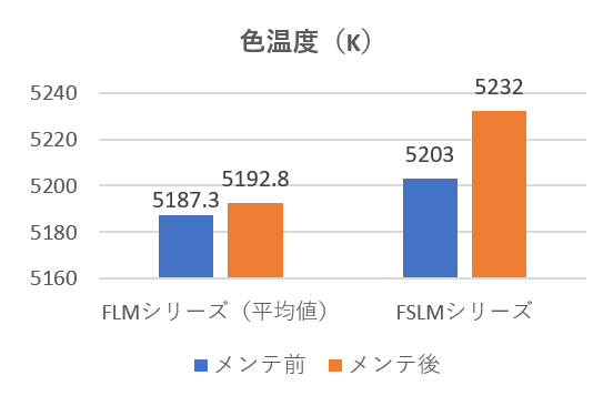 色温度(K) :5203 (メンテ前) →5232 (メンテ後) 変化率+0.56%