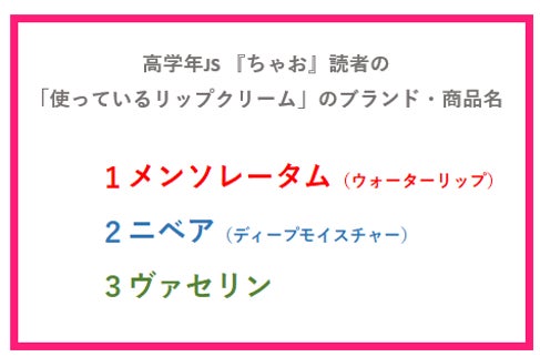 3. リップクリームはイマドキJSの半数以上が持っている定番アイテム!スキンケアカテゴリでは「ニベア」や「無印良品」、「ハトムギ」のアイテムに人気集中。