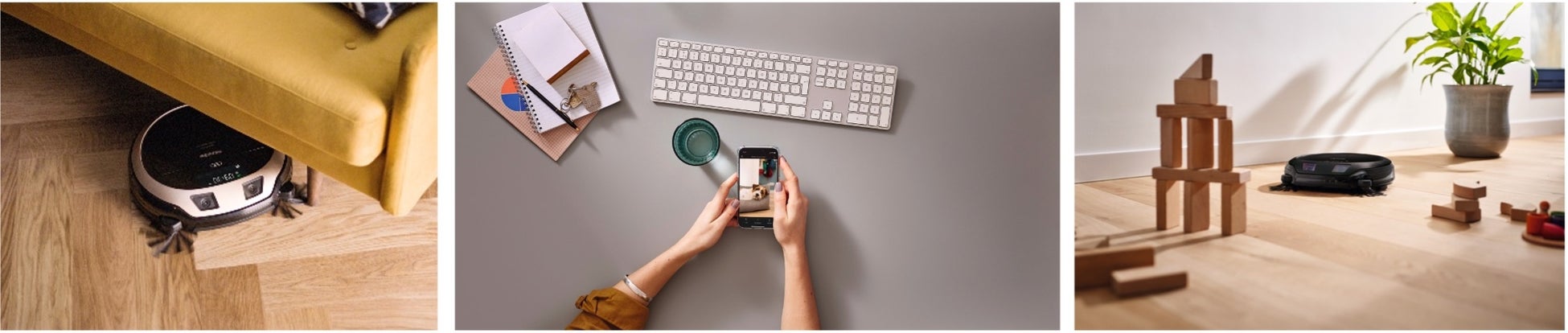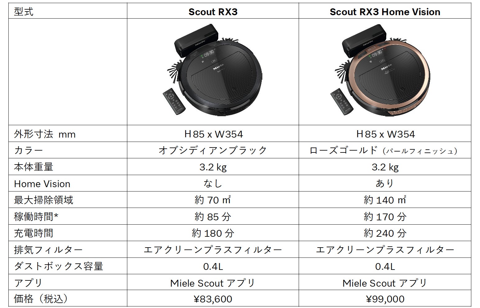 「Scout RX3」は、部屋の隅々までしっかりと掃除を行うロボット掃除機です。 Quattro Cleaning Power (クワトロクリーニングパワー)を採用し、20本アームの高密度な2本のサイドブラシで壁際やコーナーにあるゴミをかき集め、機器の下部にあるローラーブラシがゴミを吸引します。 残された細かな粒子は、機器の後部にある吸引開口部からの強力な気流により徹底的に除去します。 また、本製品の高さがわずか8.5cmなので、普段掃除がしづらいベッドやソファ、テレビ台の下などの家具の狭い隙間に入り込み、部屋の隅々までしっかりと掃除を行います。 専用アプリで稼働状況を確認でき、どこからでも操作可能。 上位機種「Home Vision」モデルはカメラ機能(HD)を搭載。HDのライブ画像はモバイル端末に送信され、リアルタイムでモニタリングが可能。部屋の様子を確認できます。