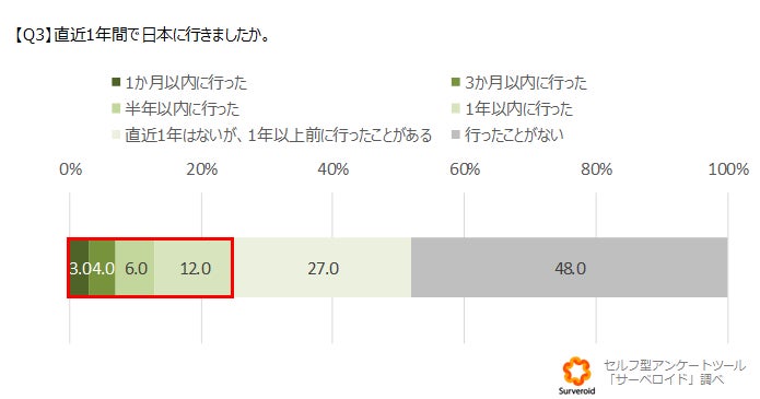 直近1年以内に日本を訪れたと回答した人は25%となりました。