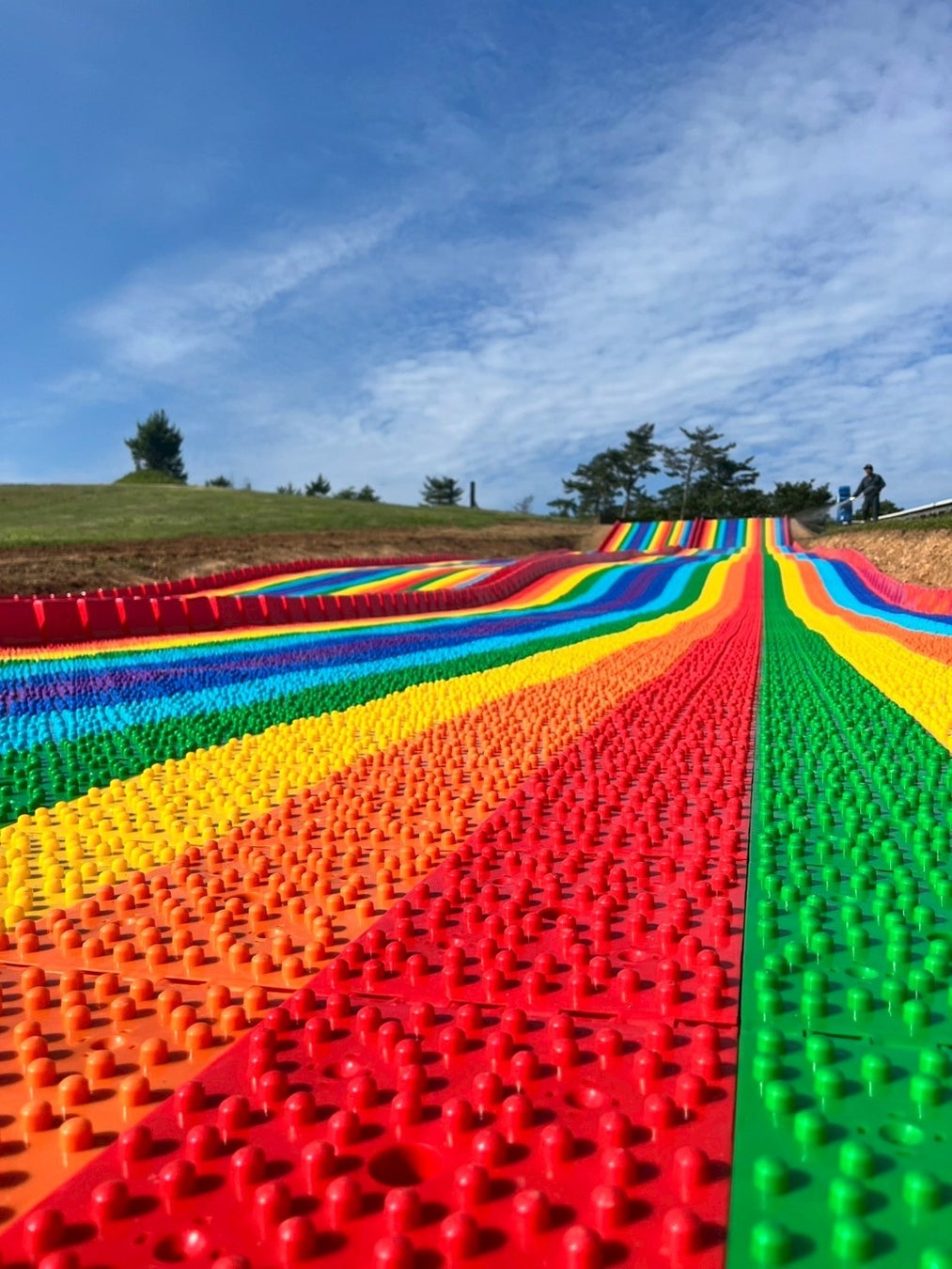 園内では、全長50m・幅4mの巨大「虹色スライダー」、ジップライン、バギー体験など多彩なアクティビティが満載。大人も子どもも一日中楽しめます。