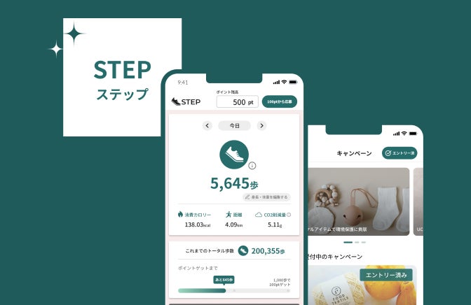 また、「エコに、お得に、健康に」というテーマを掲げ、歩数に応じサステナブルなアイテムをゲットできるキャンペーン機能も充実しています。