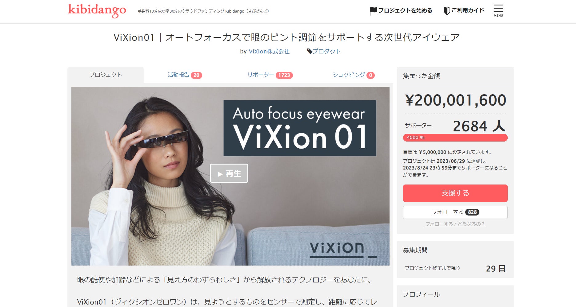 クラウドファンディングで2億円を突破した「ViXion01」、製品展示会を千葉・愛知・京都・広島・福岡で開催