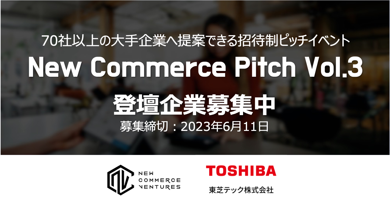 NCVでは、『New Commerce Pitch』と題して、小売・流通領域の大手企業に対してスタートアップが営業・協業を提案する招待制ピッチイベントを開催しています。第三弾となる今回は、前回に続き国内POS市場シェアの50%以上を占め、小売の決済インフラを支える東芝テックとの共催により、より多くのスタートアップと事業会社の協業・導入機会の創出を目指します。