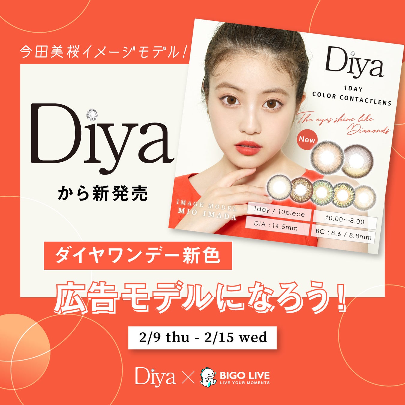 『「Diya」 × 「BIGO LIVE 」今田美桜イメージモデルの「Diya」から新発売【ダイヤワンデー新色】広告モデルになろう! 』(開催日時:2023年2月9日 〜2月15日)