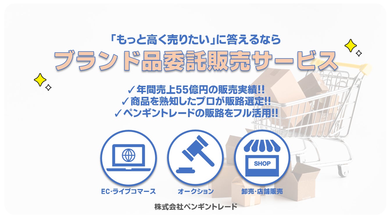 2024年10月16日、株式会社ペンギントレード(本社:東京都渋谷区宇田川町3-5 Spark SHIBUYA 6階、代表取締役:佐藤佑一)は、買取販売事業者が抱える在庫商品を最も早く、高い価格で売れる販路で販売する委託販売サービスの提供を開始します。当サービスは、複数の販路を活用して販売価格の最大化と保管コストの最小化を実現し、ブランド品の出品・販売を希望する事業者にとって最適な選択肢となることを目指します。詳細やお申込みについては、公式LINEでお問い合わせください。