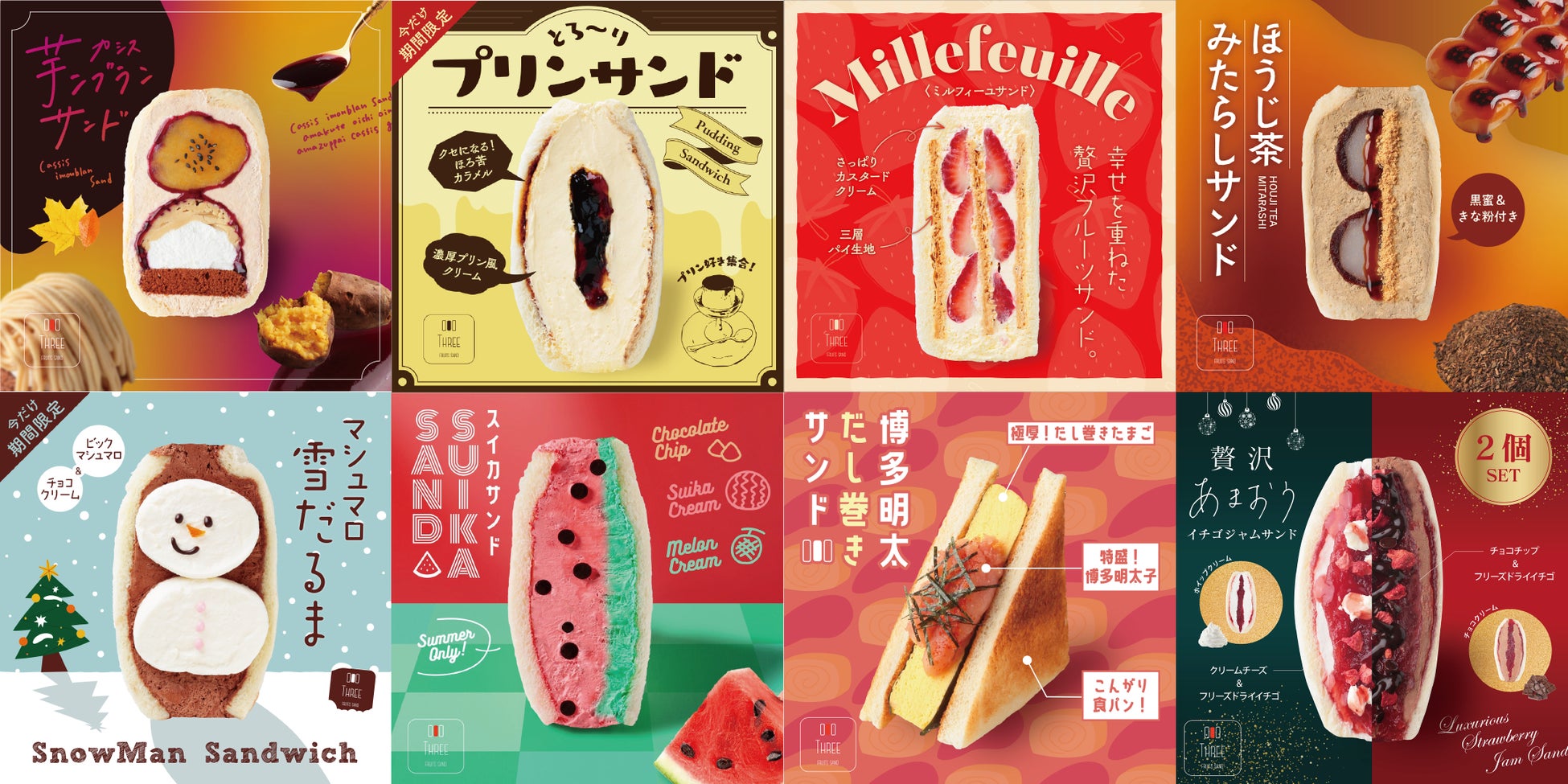 過去にはカシス芋ンブランやとろ〜りプリンサンド、ミルフィーユ、ほうじ茶みたらし、マシュマロ雪だるま、スイカサンド、博多明太だし巻きサンド、贅沢あまおうなど、様々なイマダケサンドが販売されました。