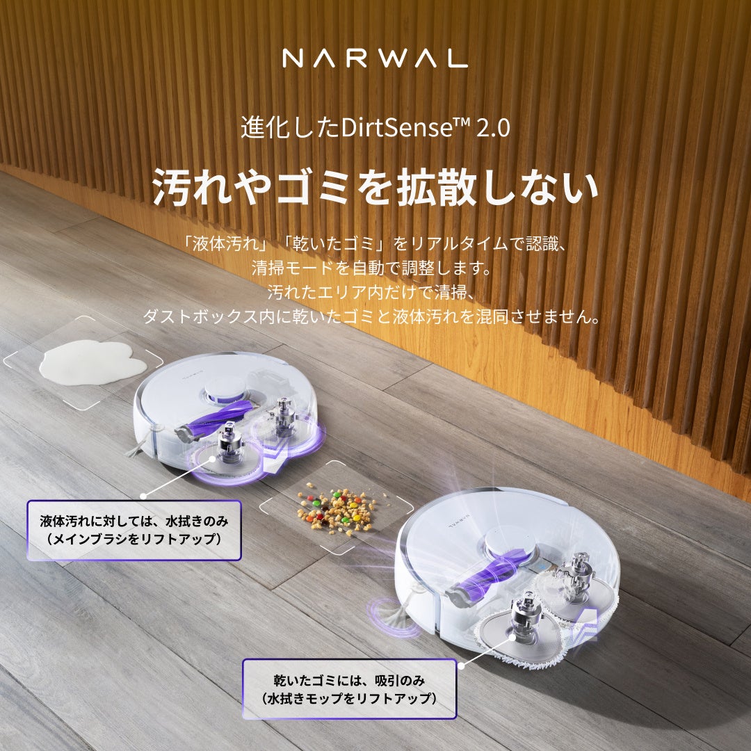 Narwal Freo Z Ultra の「ツインAIドッジ」は二つのカメラと二つのCPUにより、大きな障害物だけではなく、これまで見えなかった全てを見通す力を備えています。