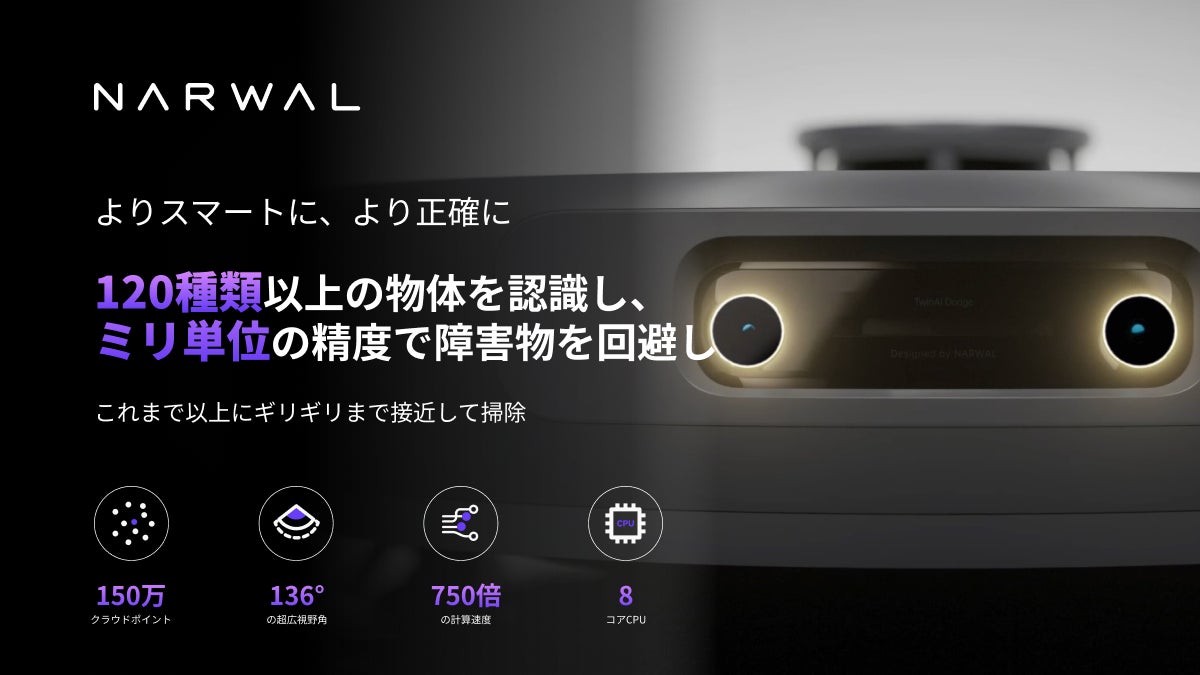 Narwal(ナーワル)社は、「まるで自ら考え行動できる」近未来型ロボット掃除機を開発・販売しているメーカーです。世界中の各家庭に、手間をかけずにピカピカでキレイな床を提供したいという思いから、2016年に創立されました。大手テクノロジー会社出身の精鋭メンバーで構成される技術チームは、最先端の技術を目指し、最高水準の性能・品質、ユーザー目線のプロダクトを兼ね備えた製品の提供に力を注いでます。