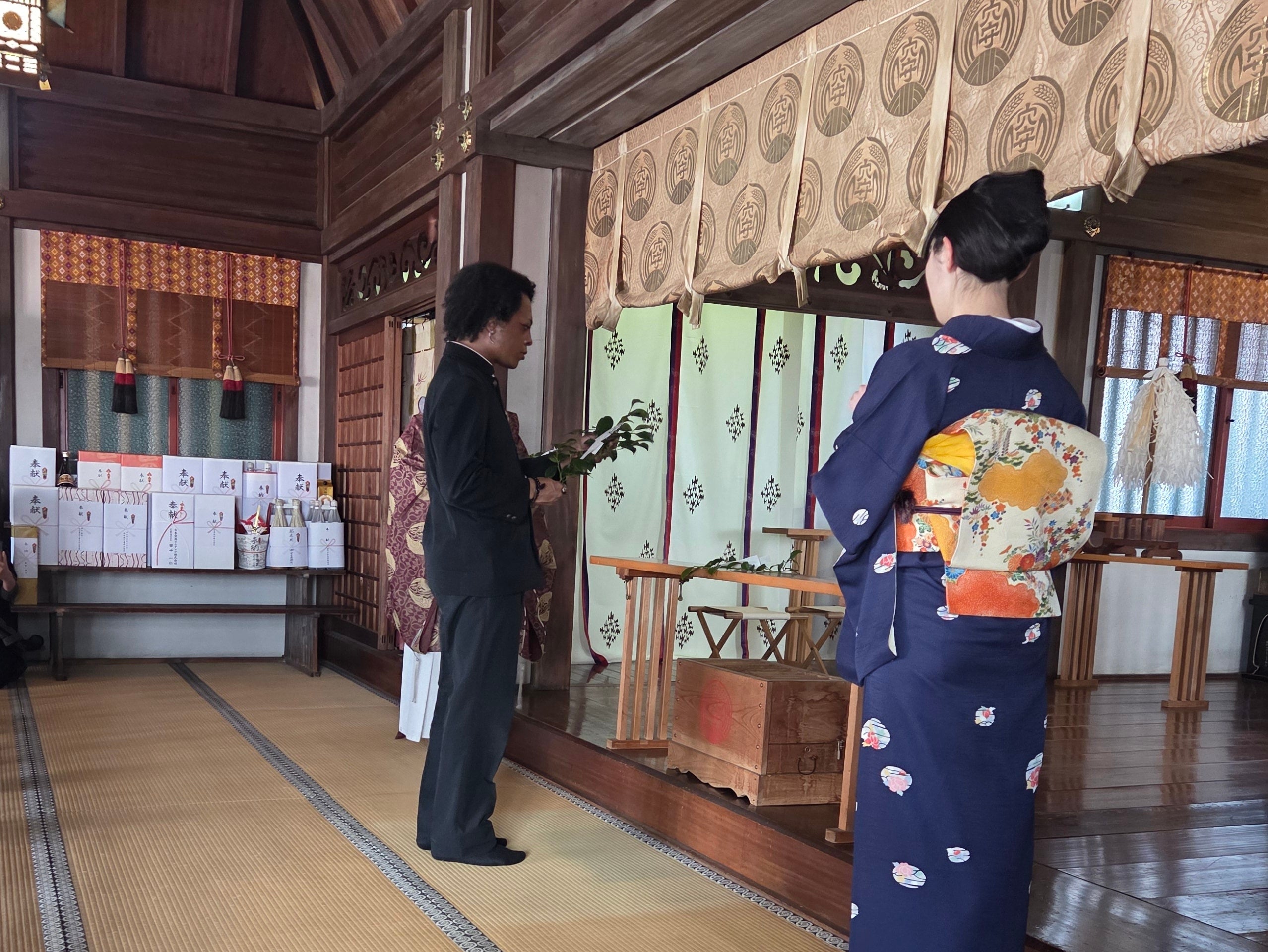 ご祈祷では参加者一人ひとりの名前が読み上げられ、日本の伝統的な神道儀礼を体感。